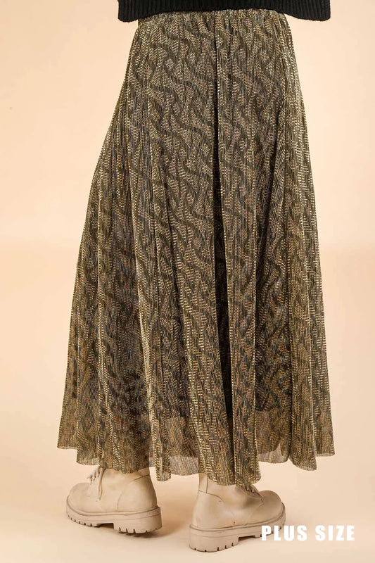 Plus Size Ethnic Metallic Pleated Elastic Waist Boho Festival Fashion Midi SkirtVendor:New In