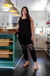 Junior Plus Black Tank Top & Ripped Detail Sweatpants Set