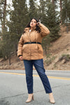 Junior Plus Camel Beige Faux Fur Harness Buckle Belt Detail Long Fitted Puffer Jacket /2-1-2-1