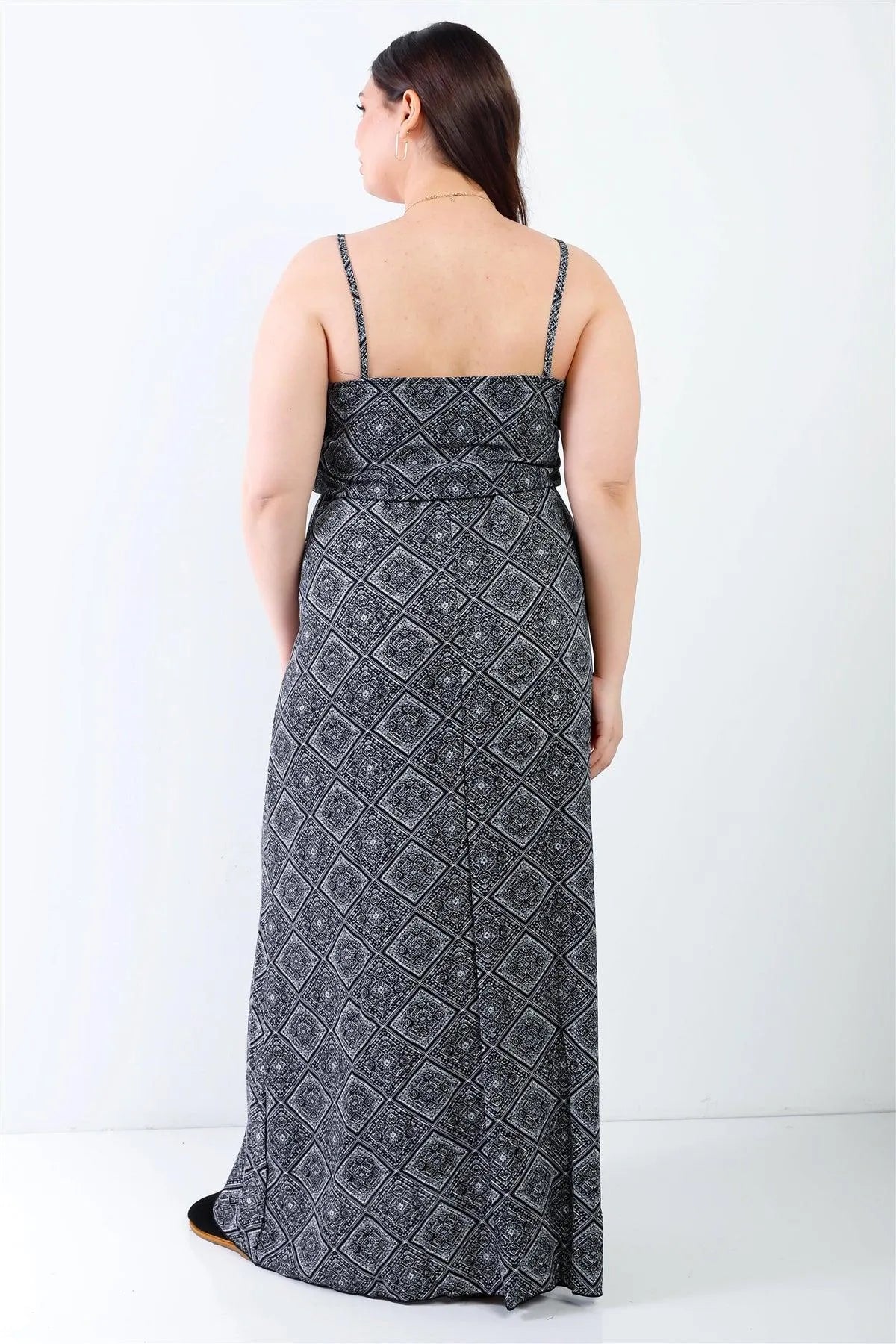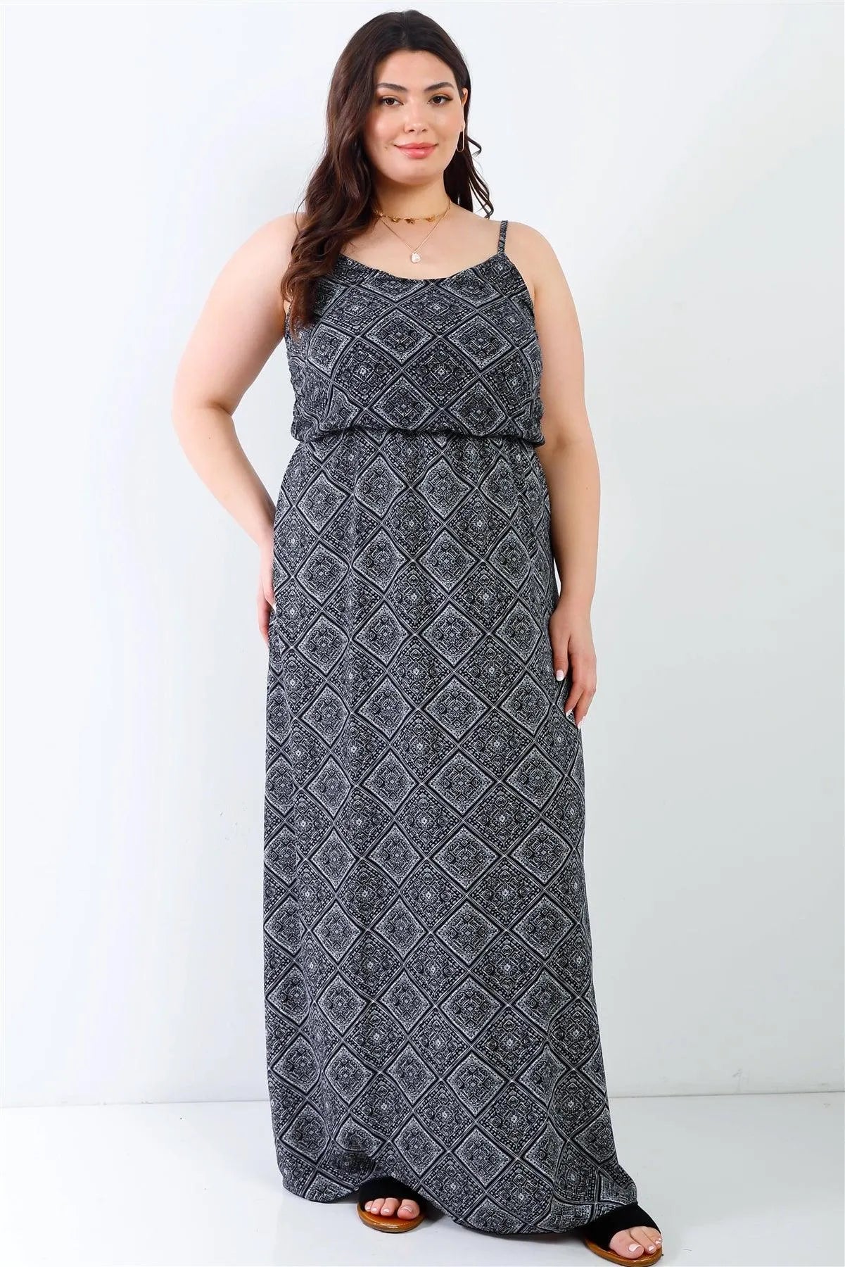 Junior Plus Charcoal Ornament Print Textured Sleeveless Maxi Dress /2-1-3