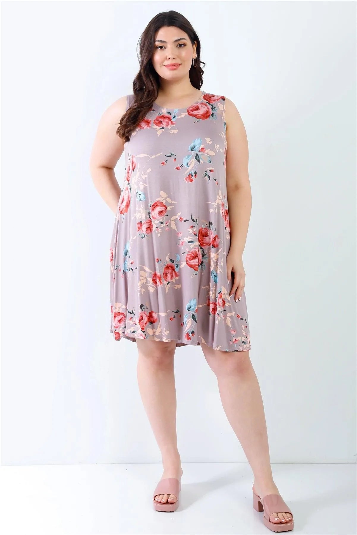 Junior Plus Cocoa Flower Sleeveless Mini Dress /2-2-2