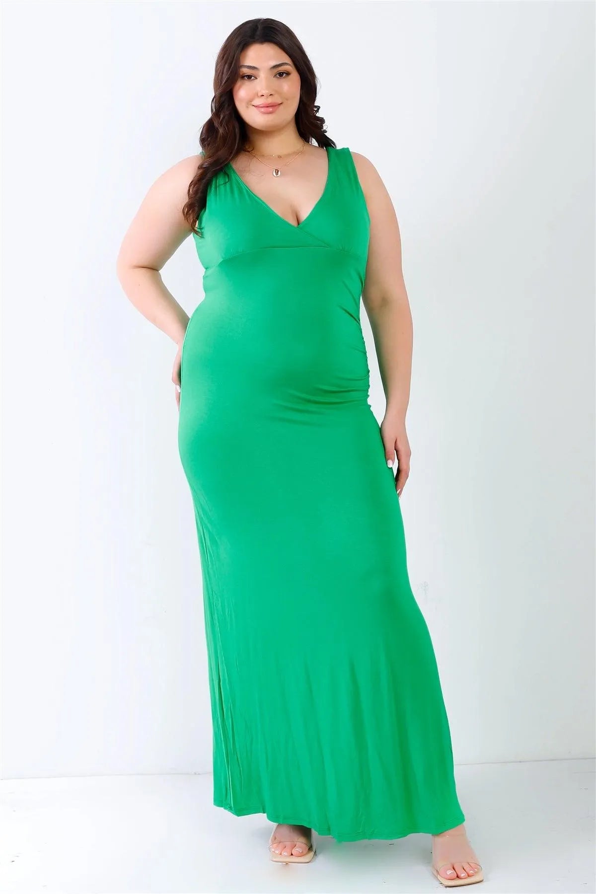 Junior Plus Green V-Neck Sleeveless Maxi Dress /2-2-2