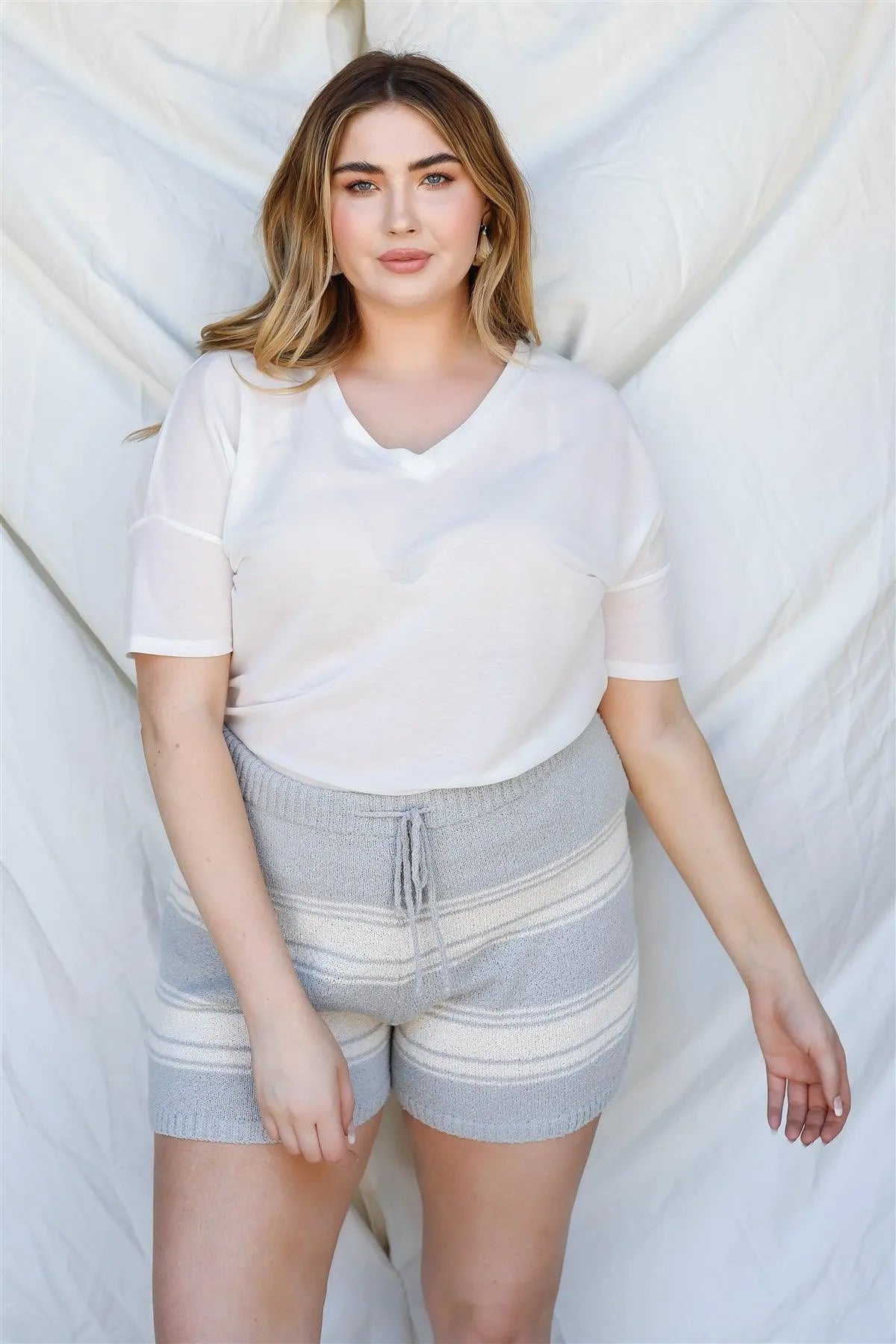 Junior Plus Heather Grey Stripe Knit Shorts /2-2-1