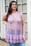 Junior Plus Lavender Lace Sheer Ruffle Hem Sleeveless Maxi Top /2-2-2