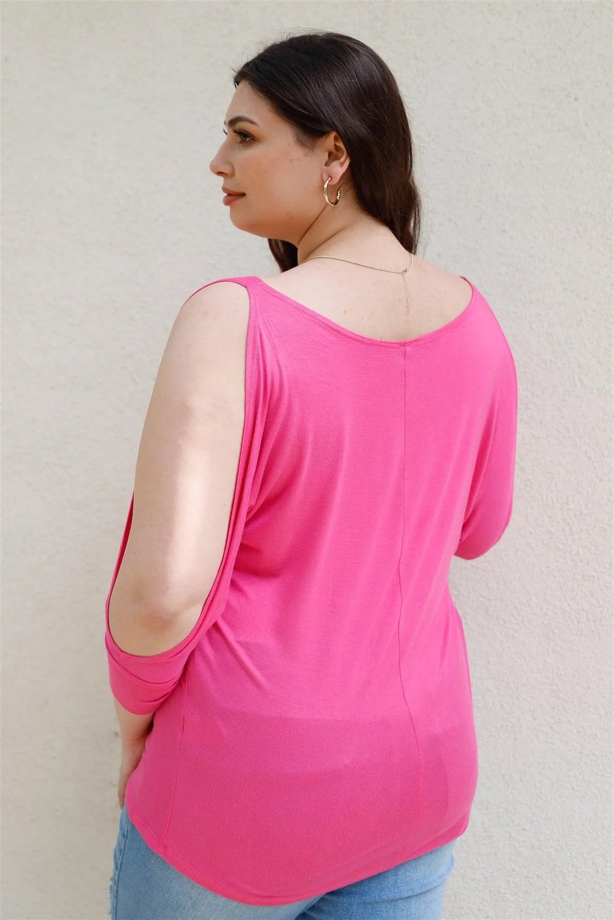 Junior Plus Light Pink Cold Shoulder Midi Sleeve Top /2-2-2