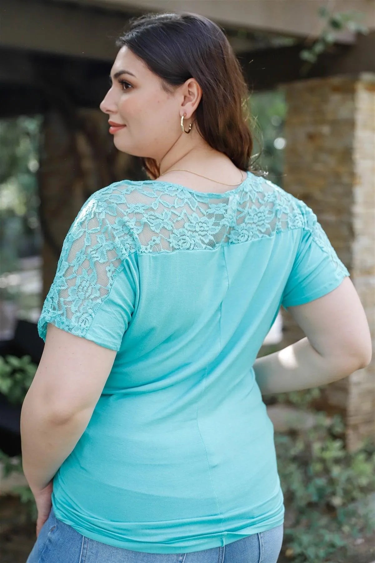 Junior Plus Mint Lace Detail Short Sleeve Top /2-2