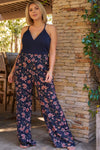 🖤 Item Features: Navy, floral print, v-neckline, insert pats, sleeveless, adjustable straps, back lace detail with zipper closure, hidden zipper and hook&eye closure, wide leg, maxi length, partly lined, non-stretch, breathable, summer vibe, boho style, cute