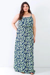 🖤 Item Features: Navy & green, floral print, textured, round neckline, sleeveless, adjustable straps, elasticized waistline, relaxed fit, maxi length, unlined, non-stretchy, non-sheer, casual, cute, girlish, trendy, summer vibe