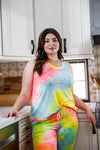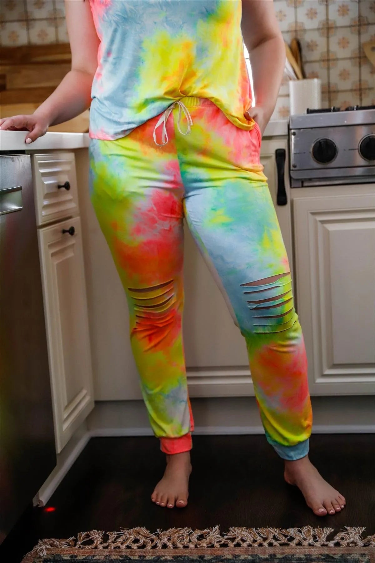 Junior Plus Neon Pink & Yellow Tie-Dye Tank Top & Ripped Sweatpants Set /1-1-1