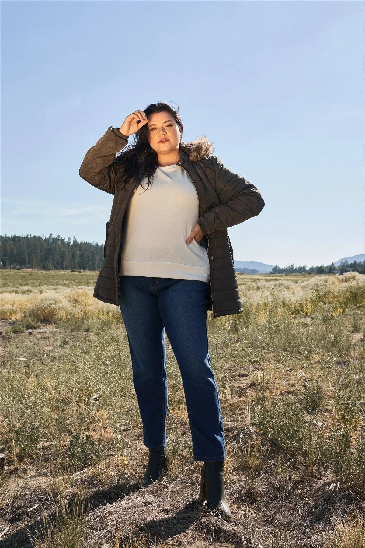 Cassie is 5'9" (Bust: 45C, Waist: 36", Hips: 47"). Model is wearing size 1X.