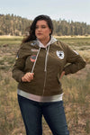 Junior Plus Aviator Military Green Retro Patches Long Sleeve Front Zipper Bomber Jacket /1-1-1