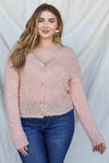 Junior Plus Pink Textured Knit Long Sleeve Cardigan Top /3-2-1