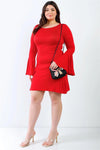 Junior Plus Red Bell Long Sleeve Mini Dress /2-2-2