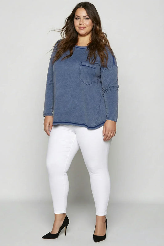 Plus Size Mineral Acid Washed Long Sleeve Crew Neck Relaxed Fit TopVendor:New In