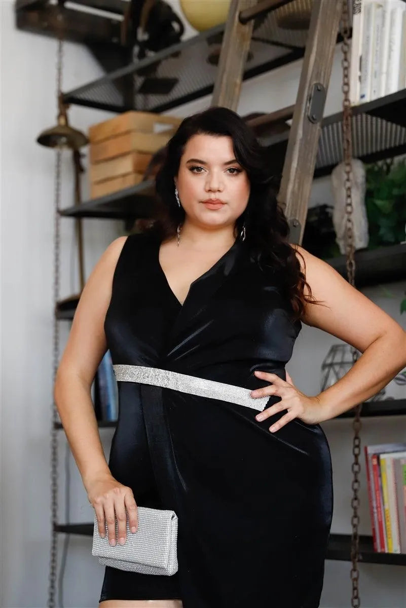 Plus Size Asymmetrical Wrap Rhinestones Fitted Blazer Dress