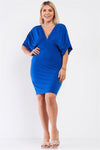 Junior Plus Royal Blue Ruched Short Sleeve V-Neck Empire Waist Mini Dress /2-2