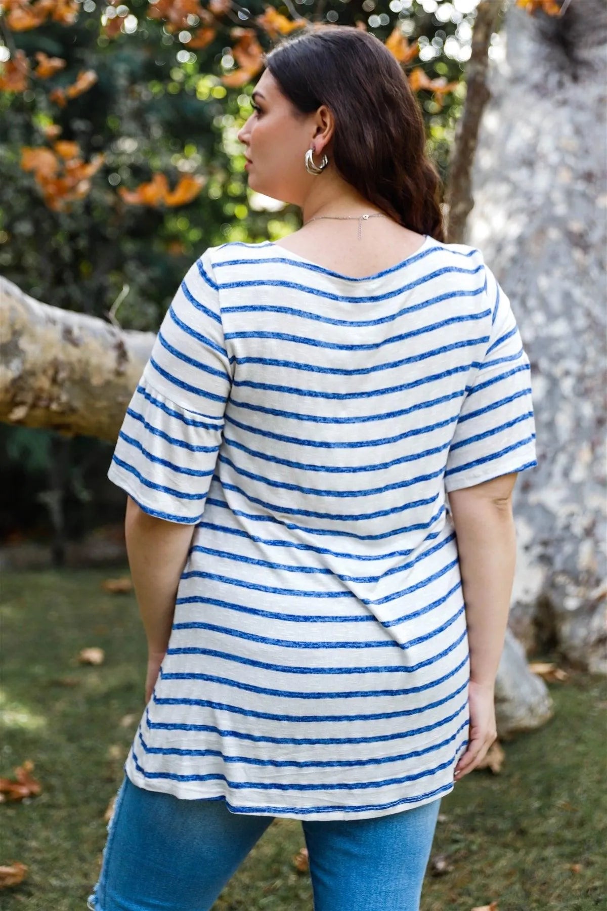 Junior Plus Royal & White Stripe Bell Short Sleeve Top /2-2-2