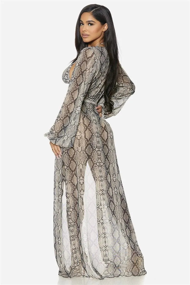 🖤 Item Features: Snake print, open front, kimono style, belted, long sleeves, maxi length, relaxed fit, stretchy, sheer, unlined, cute, stylish, trendy, vintage print, summer style