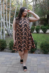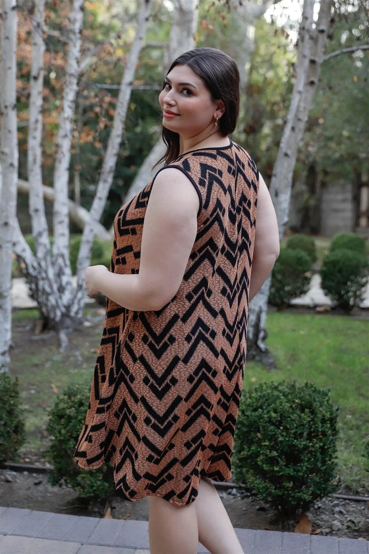Junior Plus Tan & Black Printed Sleeveless Mini Dress /2-2-2