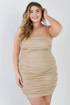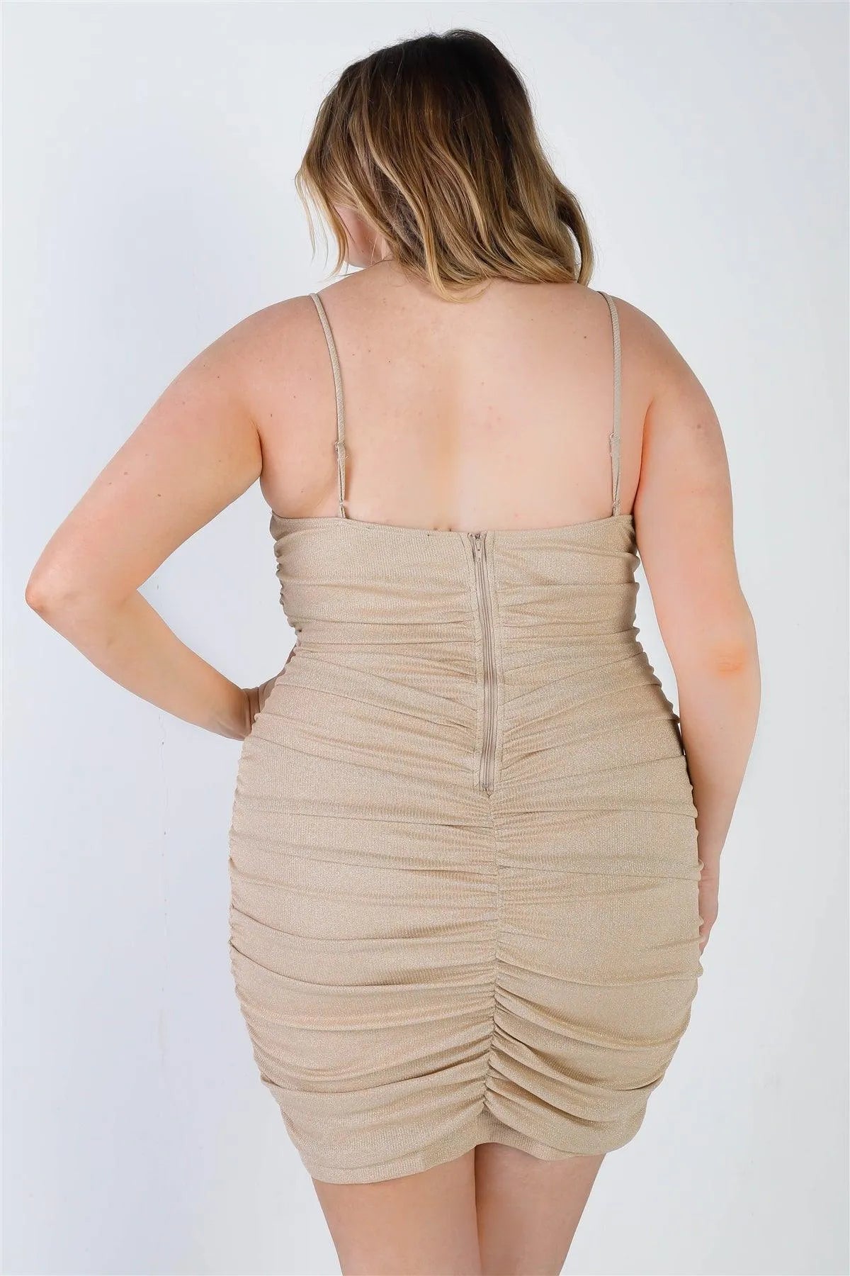 Junior Plus Taupe Lurex Ruched Mini Dress /2-2-2