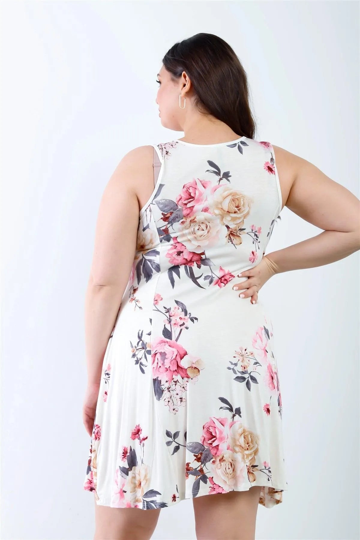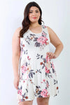 Junior Plus White Pink Flower Print Sleeveless Mini Dress/2-2-2