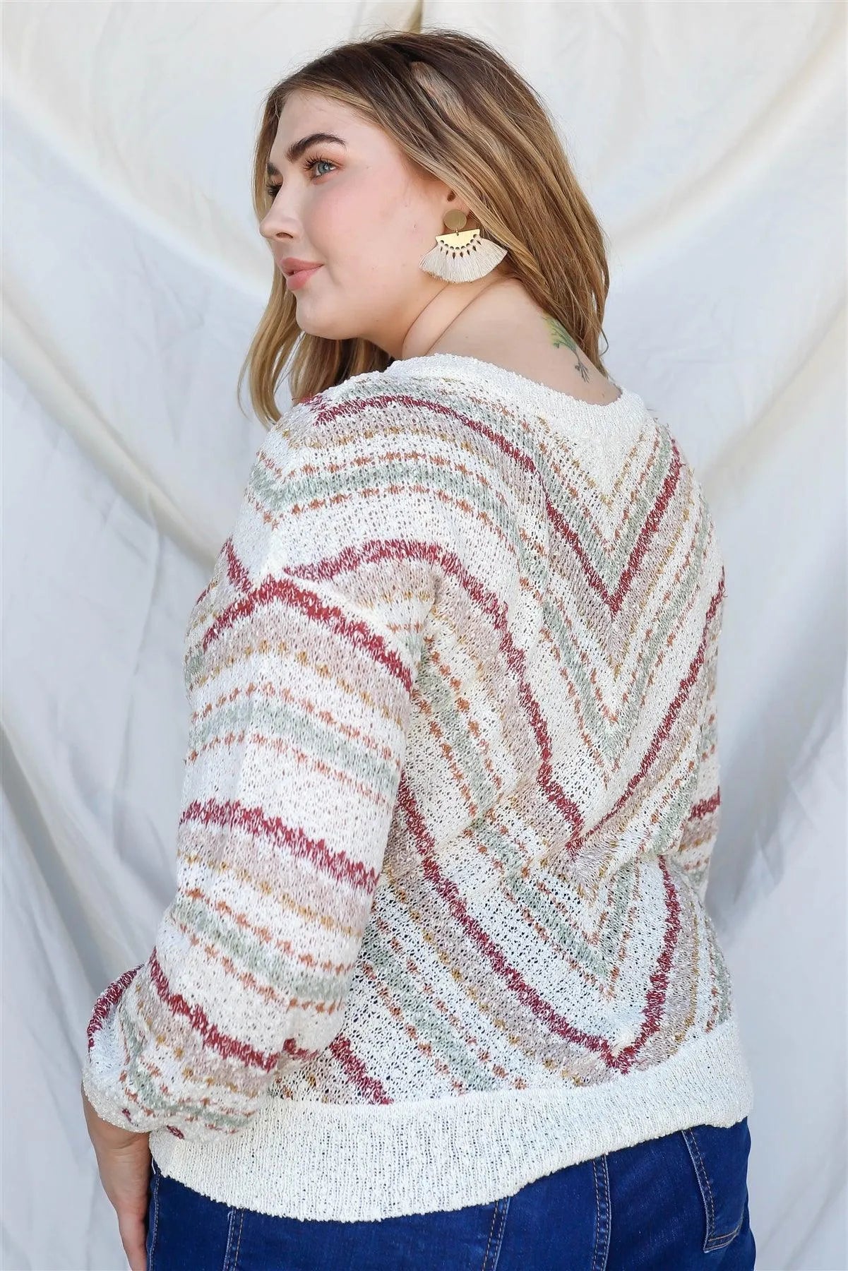 🖤 Item Features: White, stripe, knit, cotton blend material, long sleeves, ribbed cuffs & neck & hem, round neckline, dropped shoulders, semi-stretchy, unlined, semi-sheer, casual, cute, girlish, trendy, boho vibe
