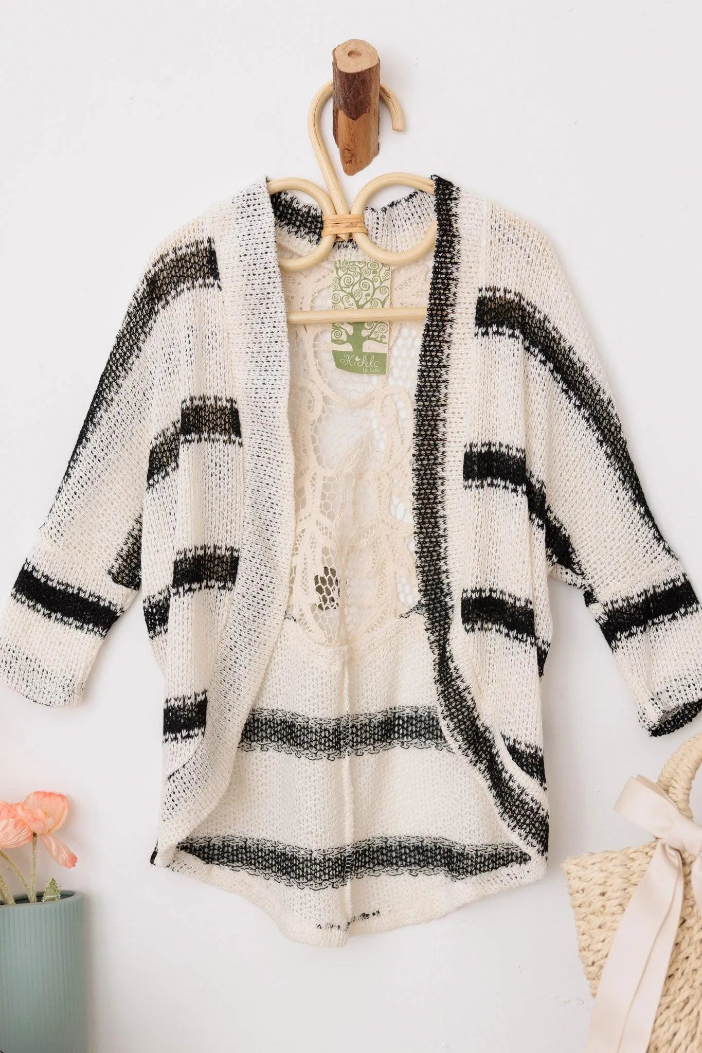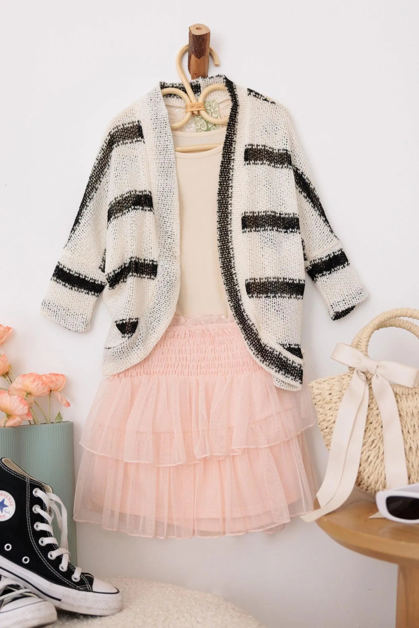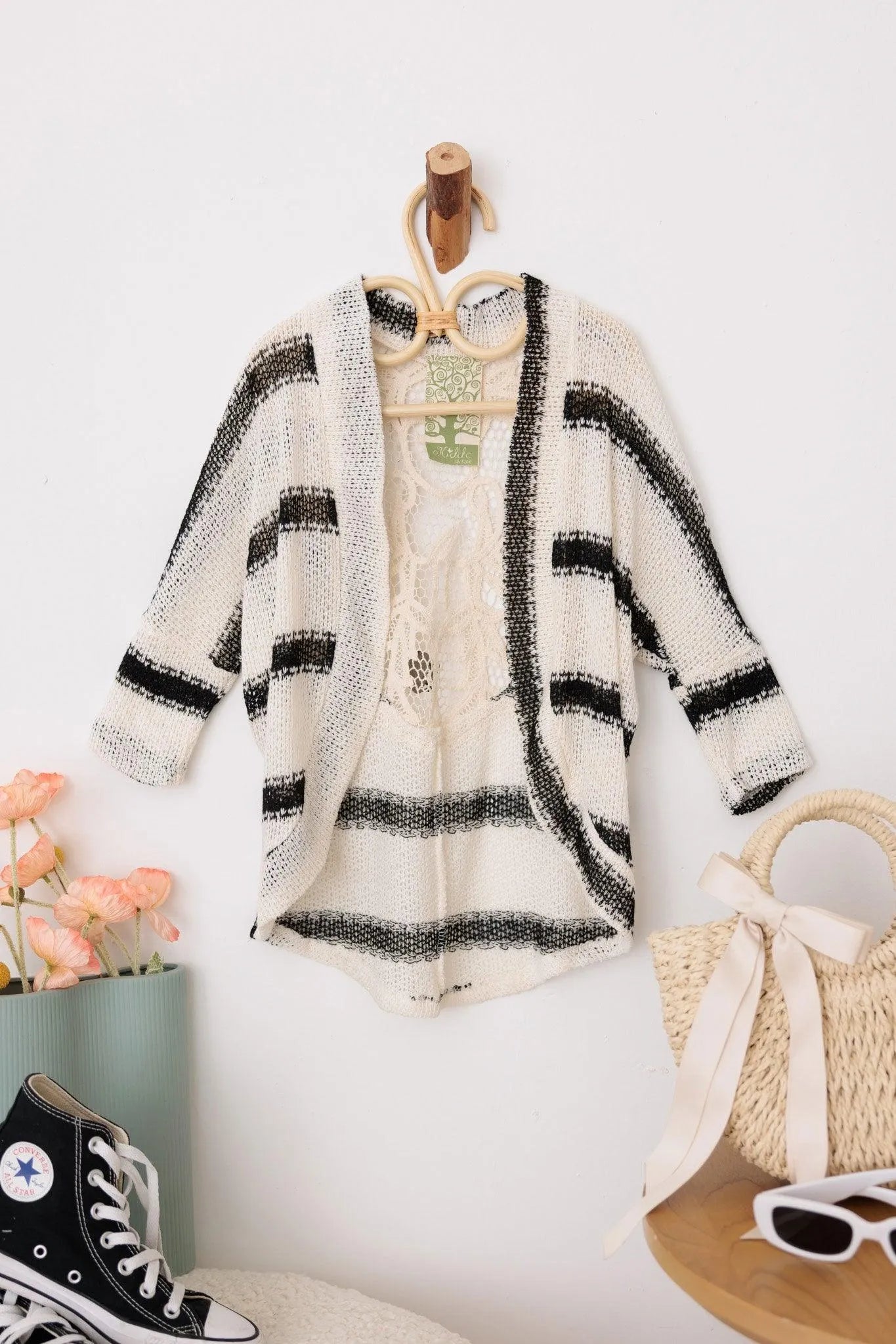 Girls Stripe Back Lace Long Sleeve Open Cardigan
