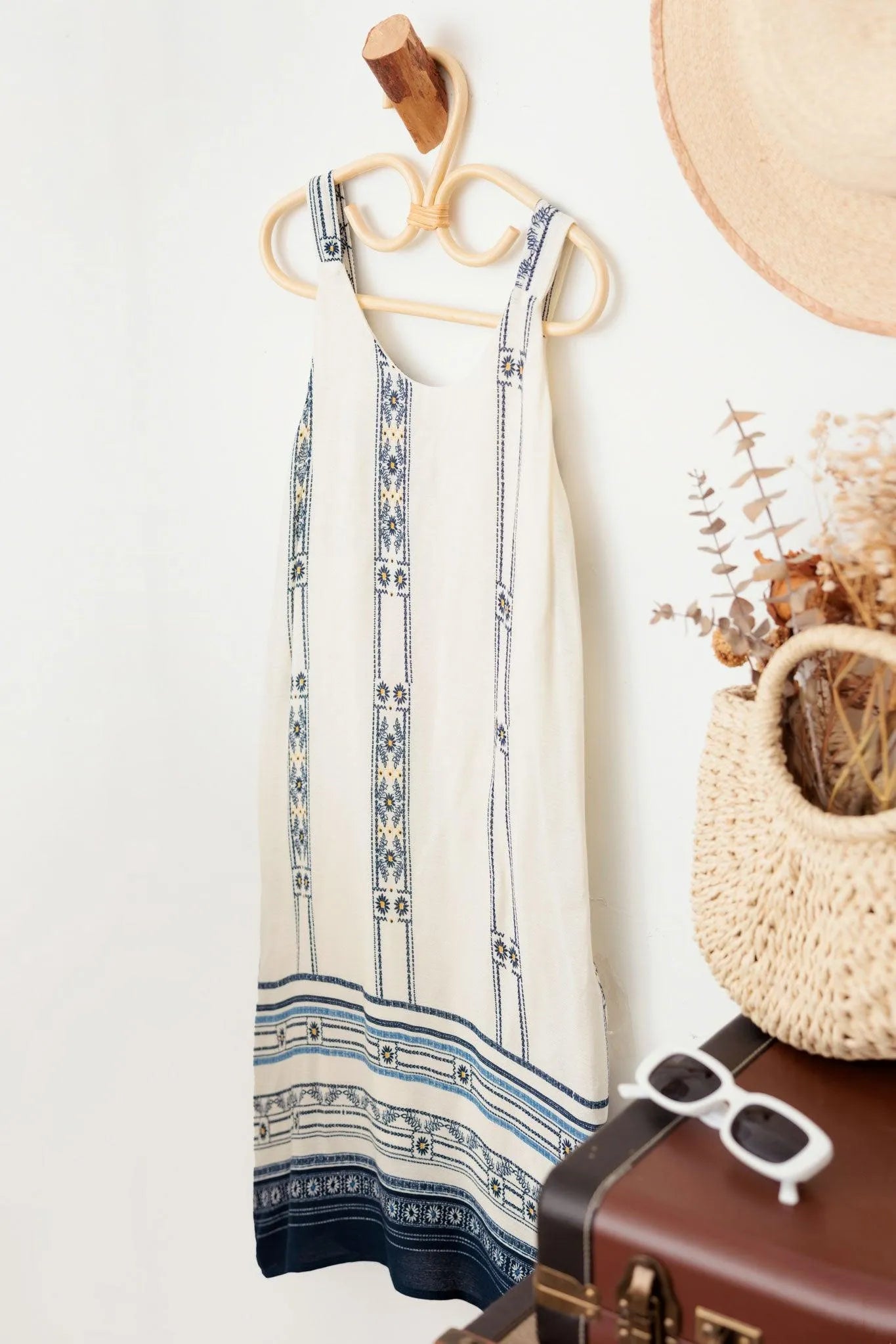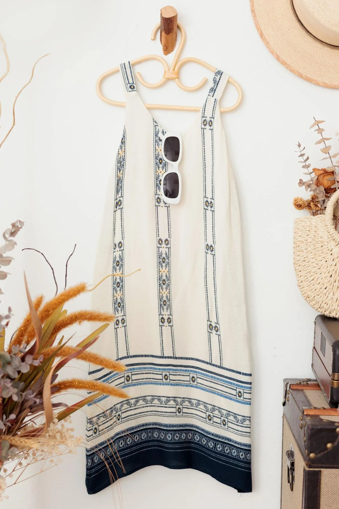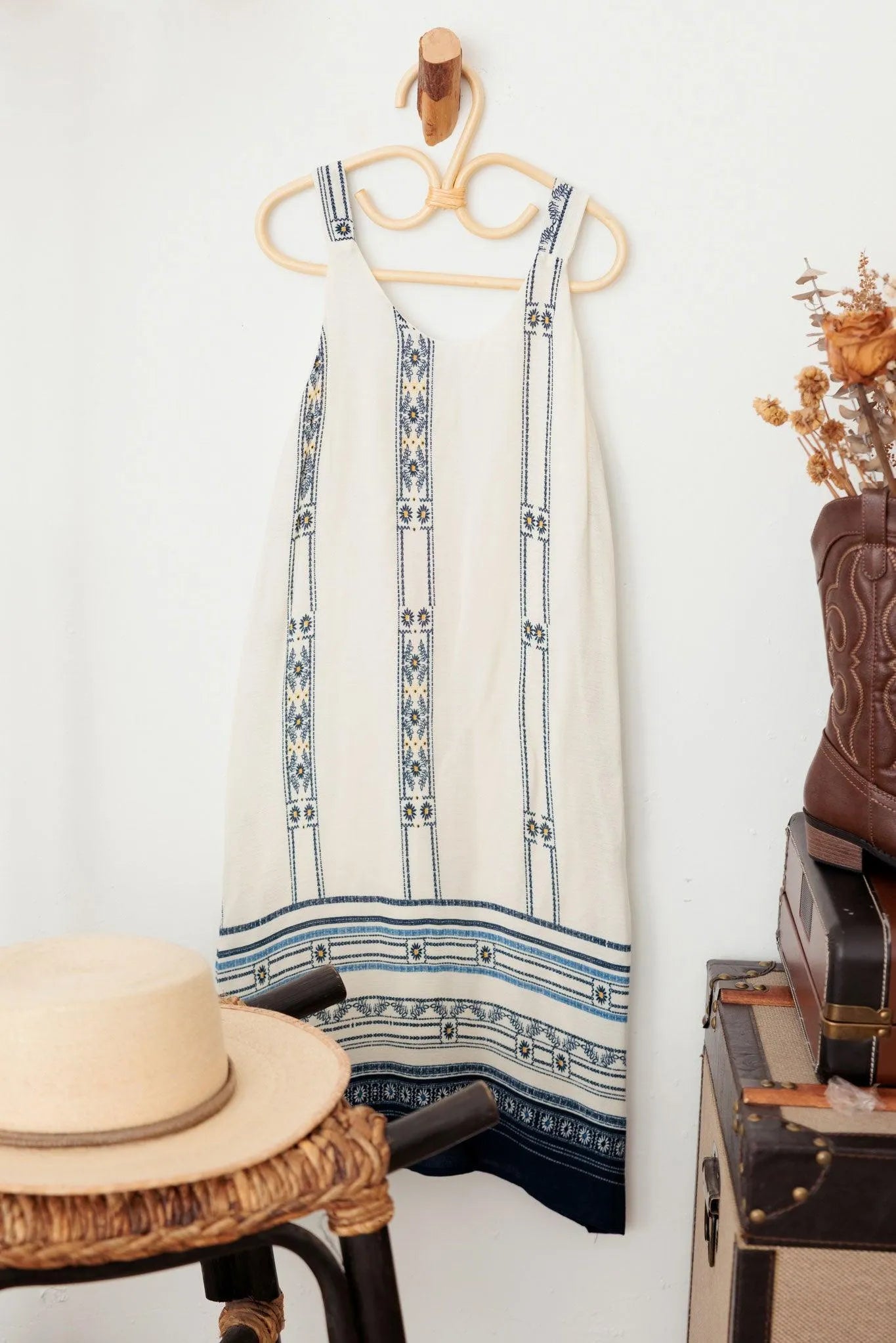 Girls Ethnic Sleeveless Embroidery Back Tie Dress