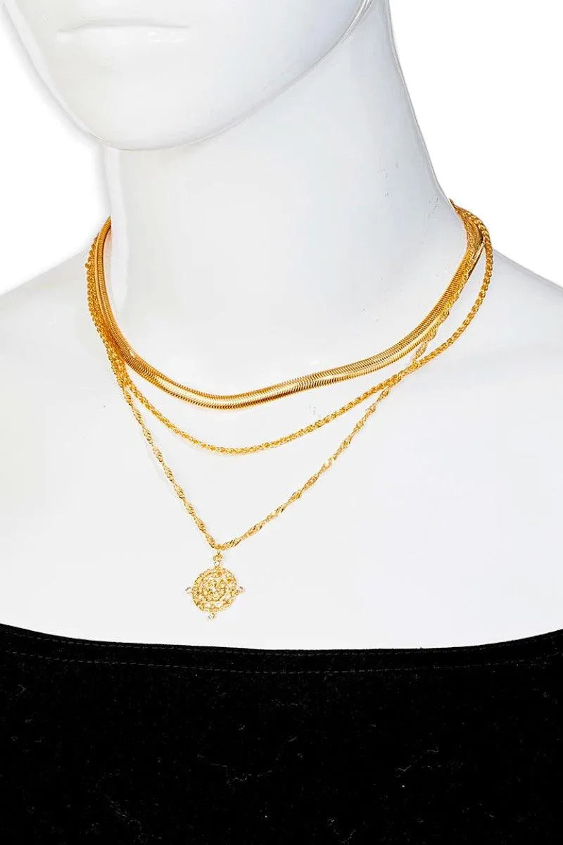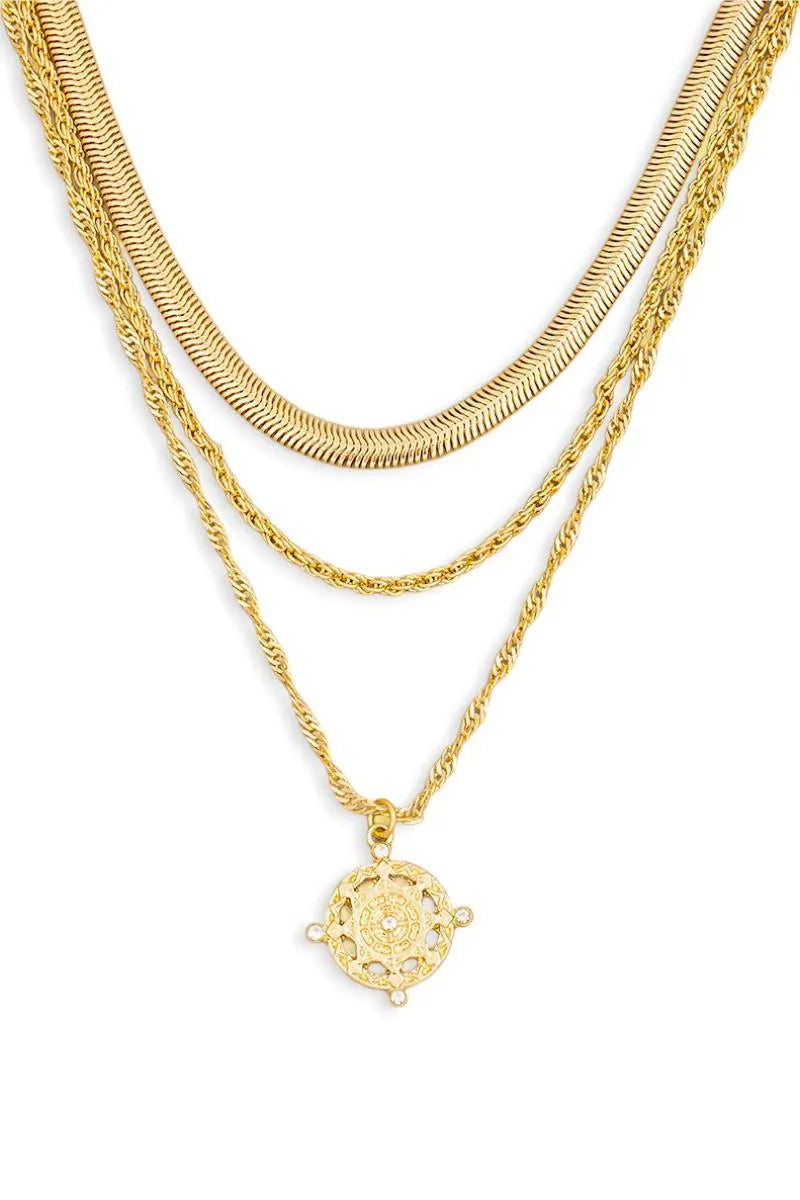 🖤 Item Feature: 3 kind layered chain, metallic, medallion pendant, boho, festival, cute, stylish, cool.