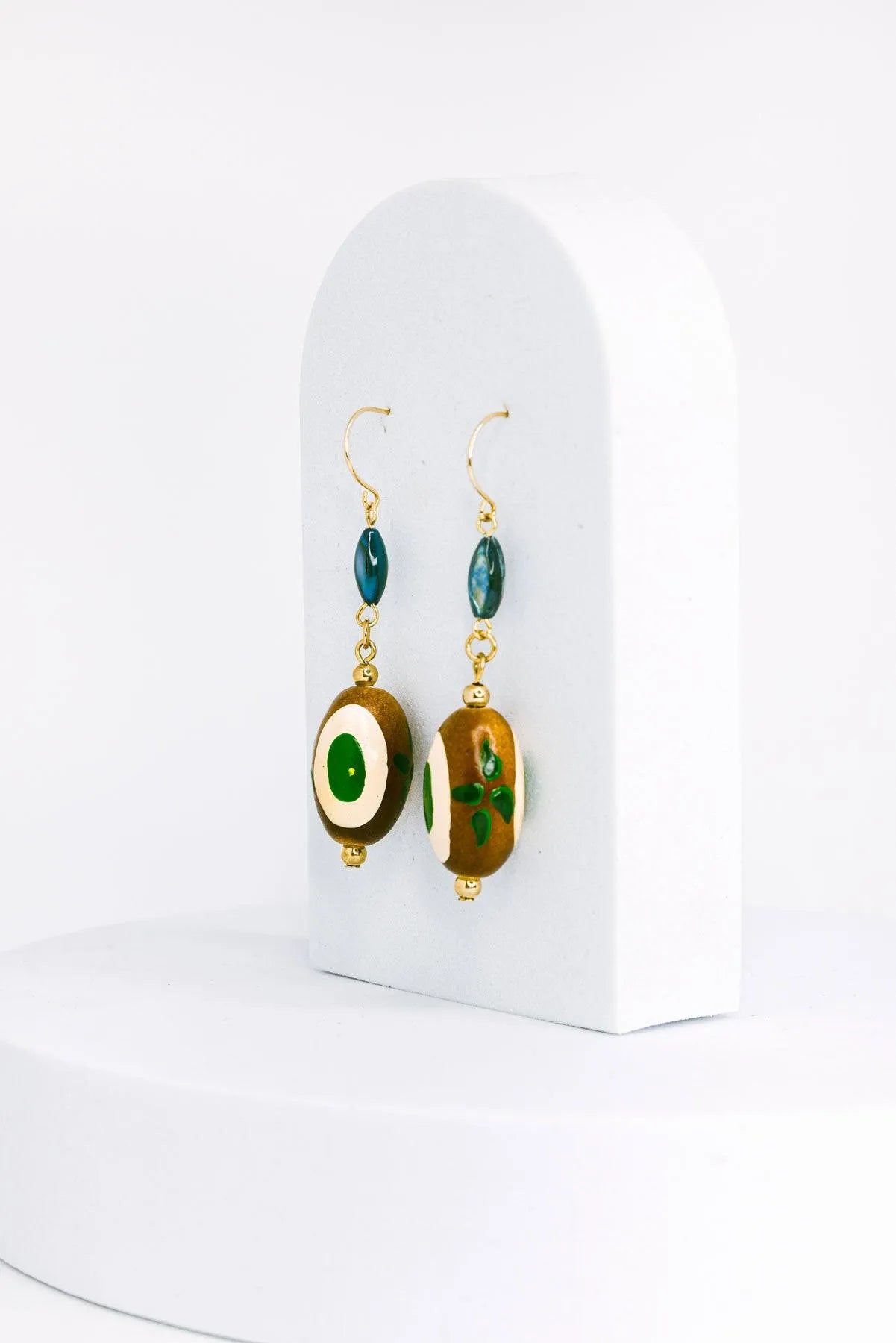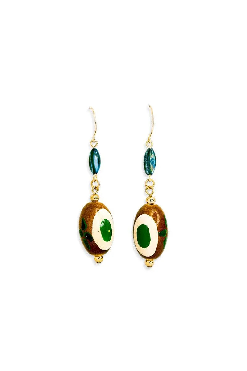 🖤 Item Feature: oval, drop earring, earring hooks, colorful wood, boho, festival, chic, girly, must have.
