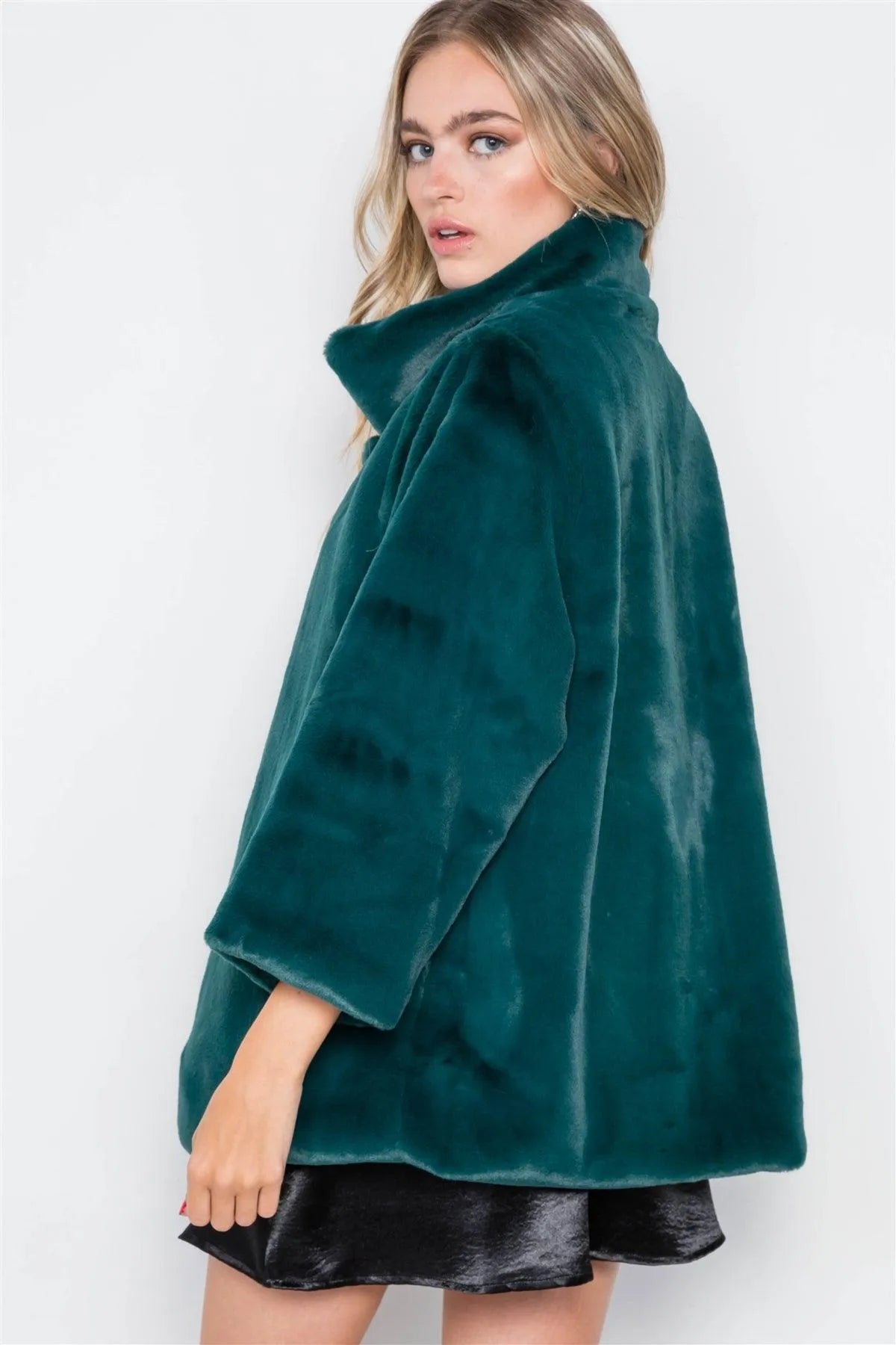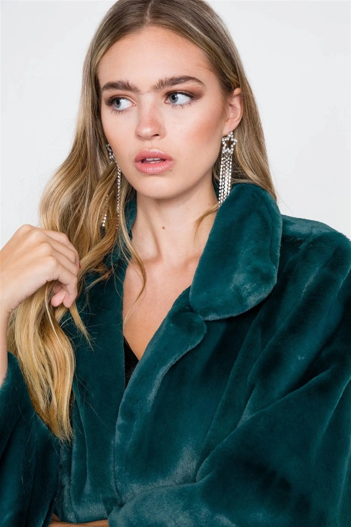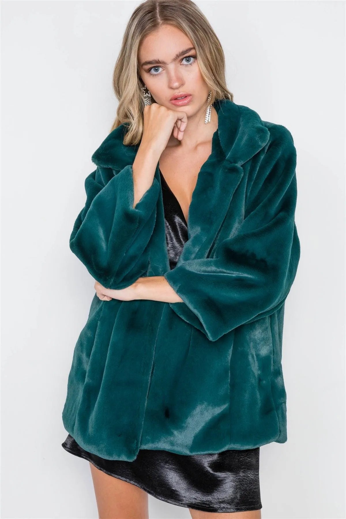 Kelly Green Faux Fur Open Front Long Sleeve Coat /2-2-2