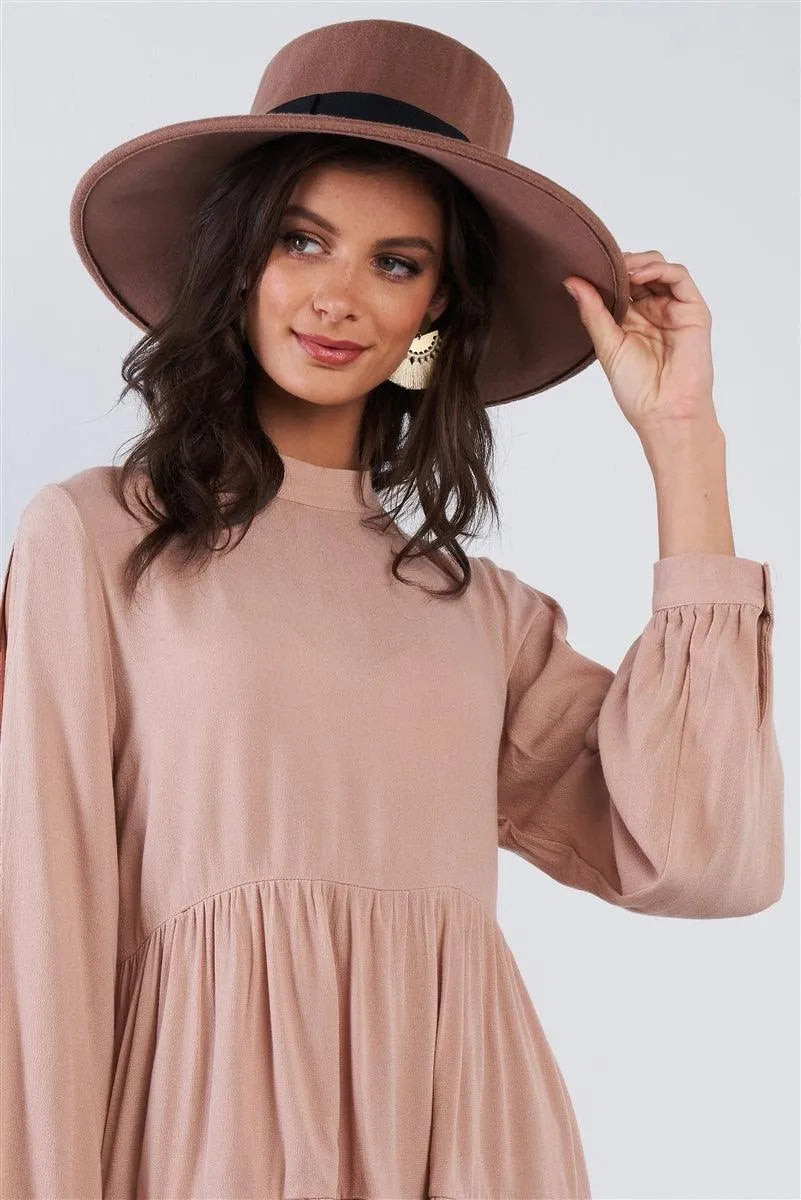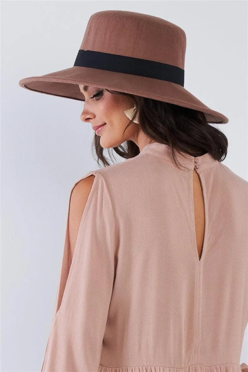 Khaki Felt Wide Brim Hat With Black Ribbon Band /3 Pieces