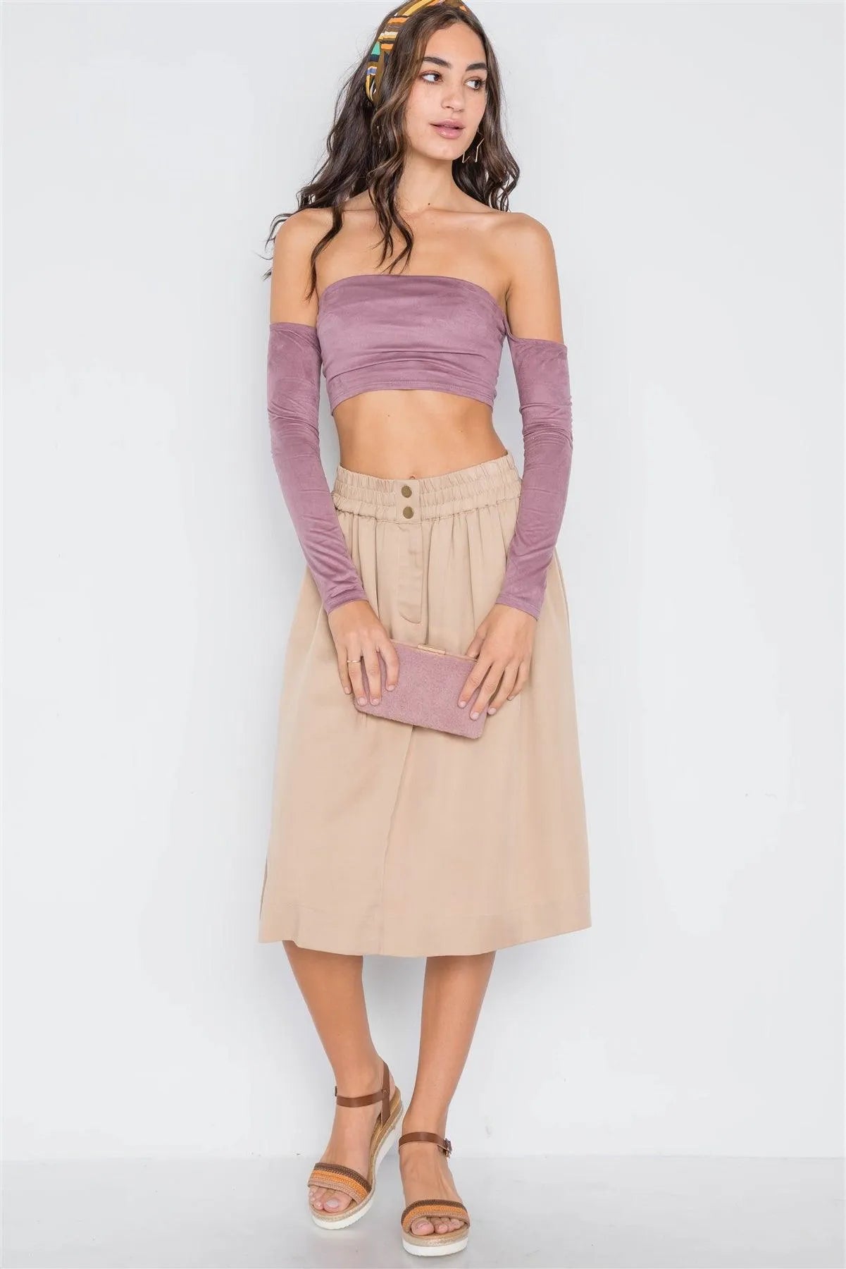 Khaki High-Waist Solid Midi Skirt /1-2-2-1