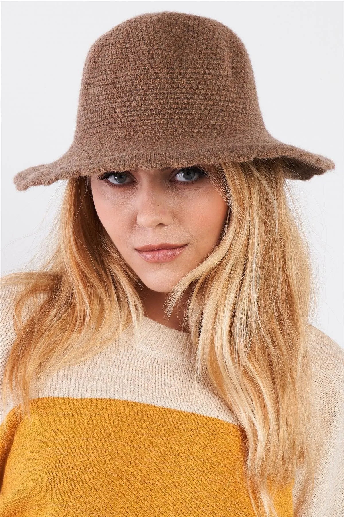 Khaki Scallop Edge Woven Panama Hat /3 Pieces