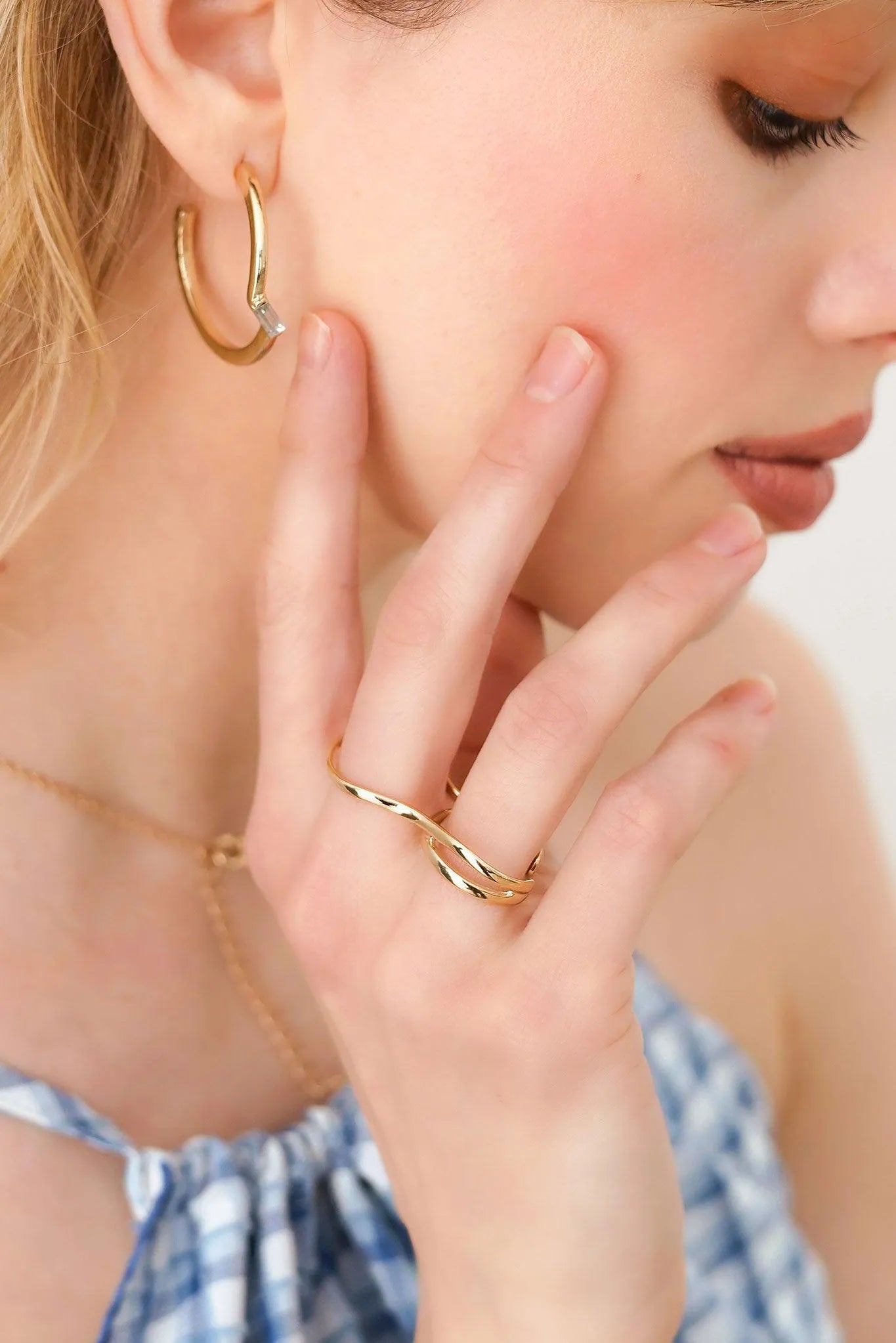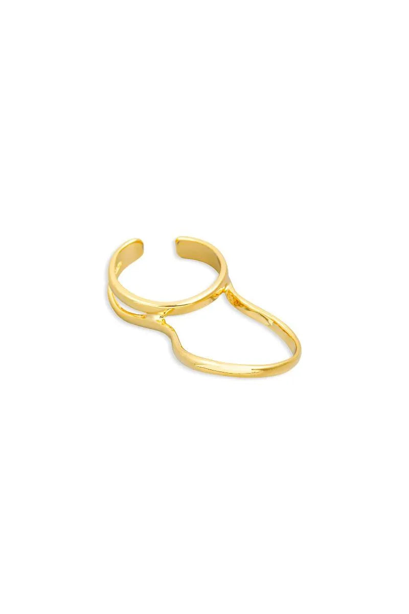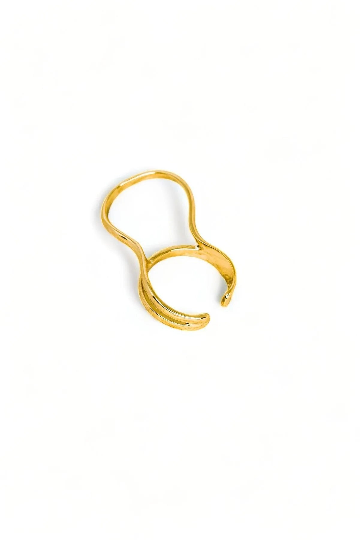 🖤Make a fashion statement with this Wavy Double Finger Gold Ring! It's the perfect accessory to add some fun and whimsy to any outfit. Embrace your playful side with this unique and trendy piece.