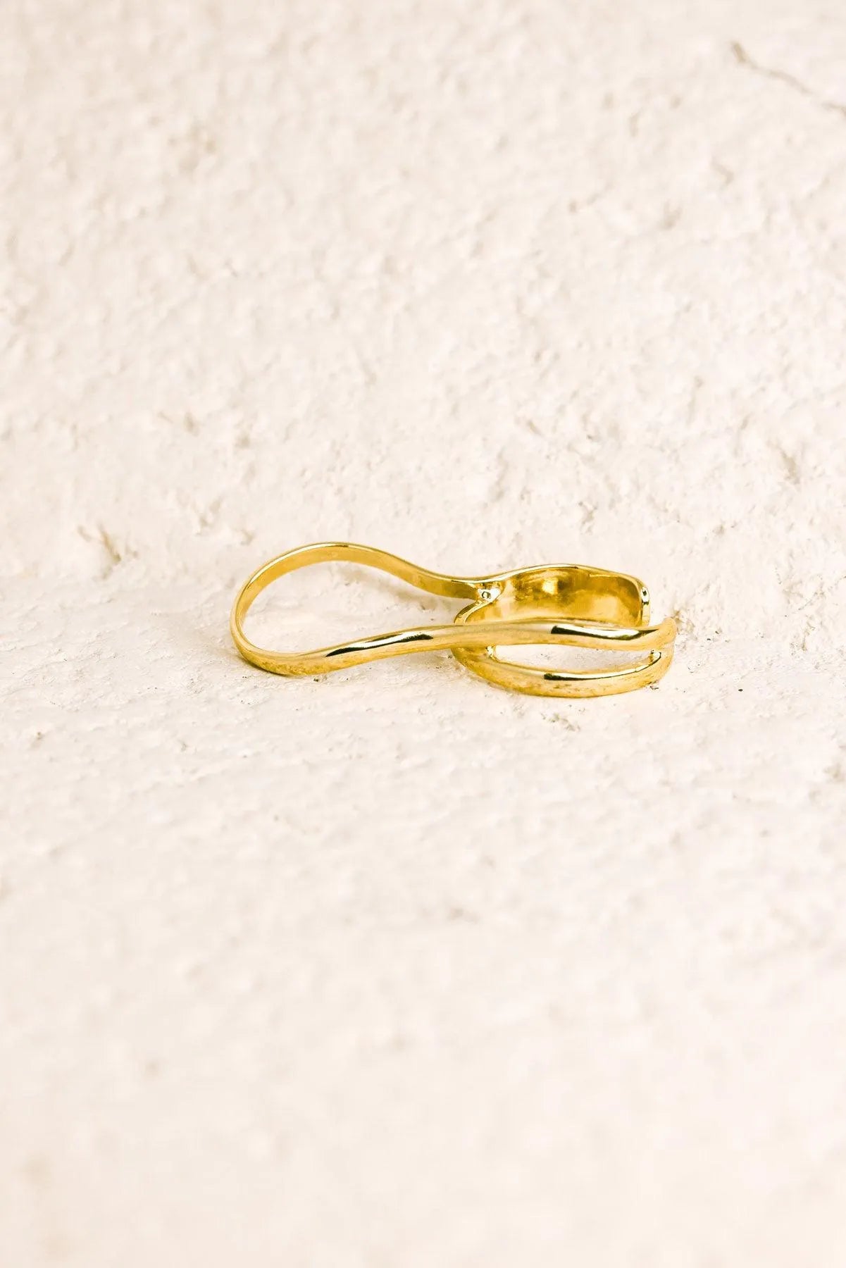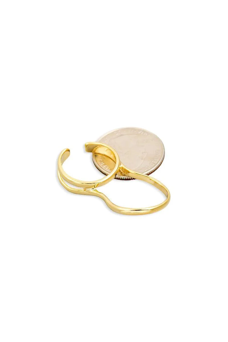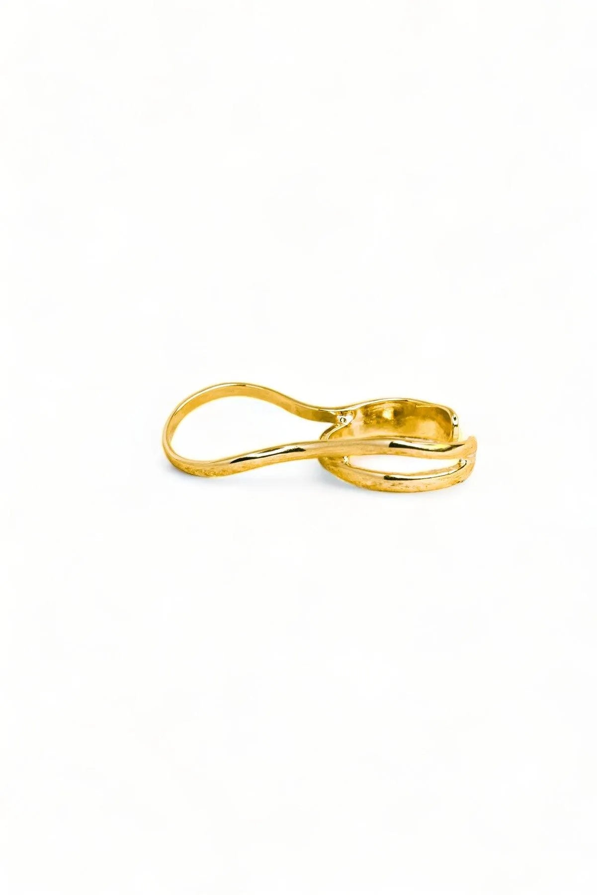 🖤Make a fashion statement with this Wavy Double Finger Gold Ring! It's the perfect accessory to add some fun and whimsy to any outfit. Embrace your playful side with this unique and trendy piece.