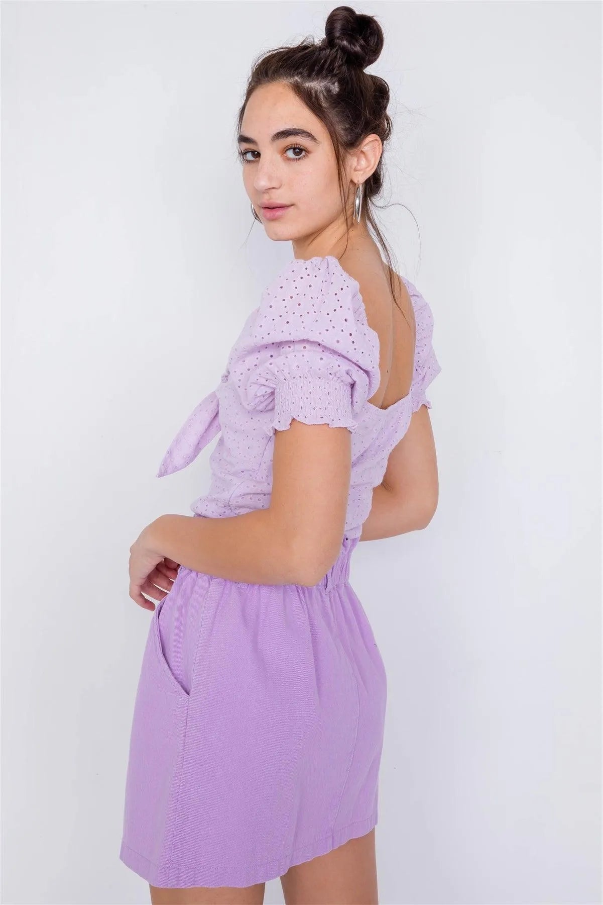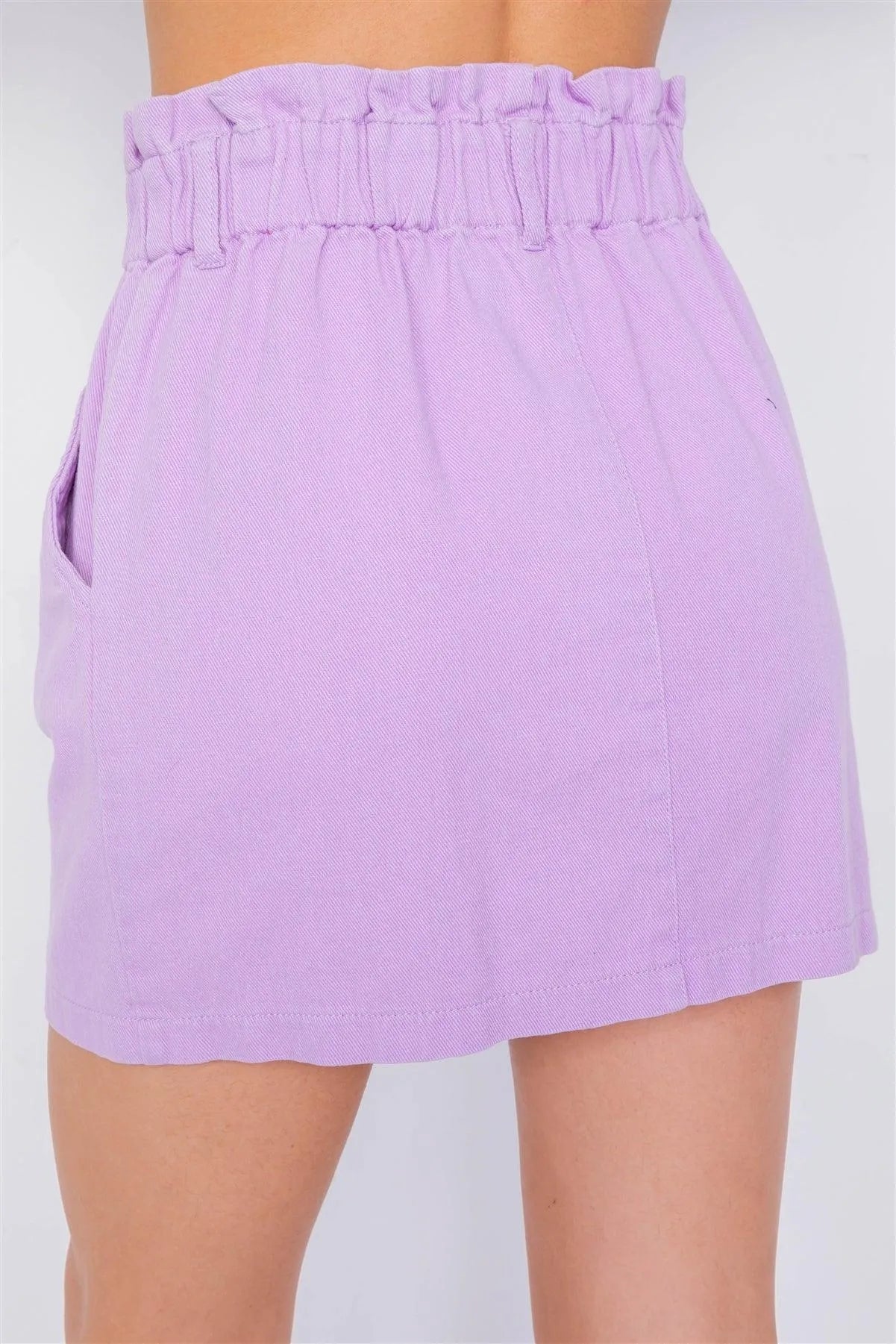 Lavender Cotton Front Button Ruffle Trim High Waist Mini Skirt /4-2-1