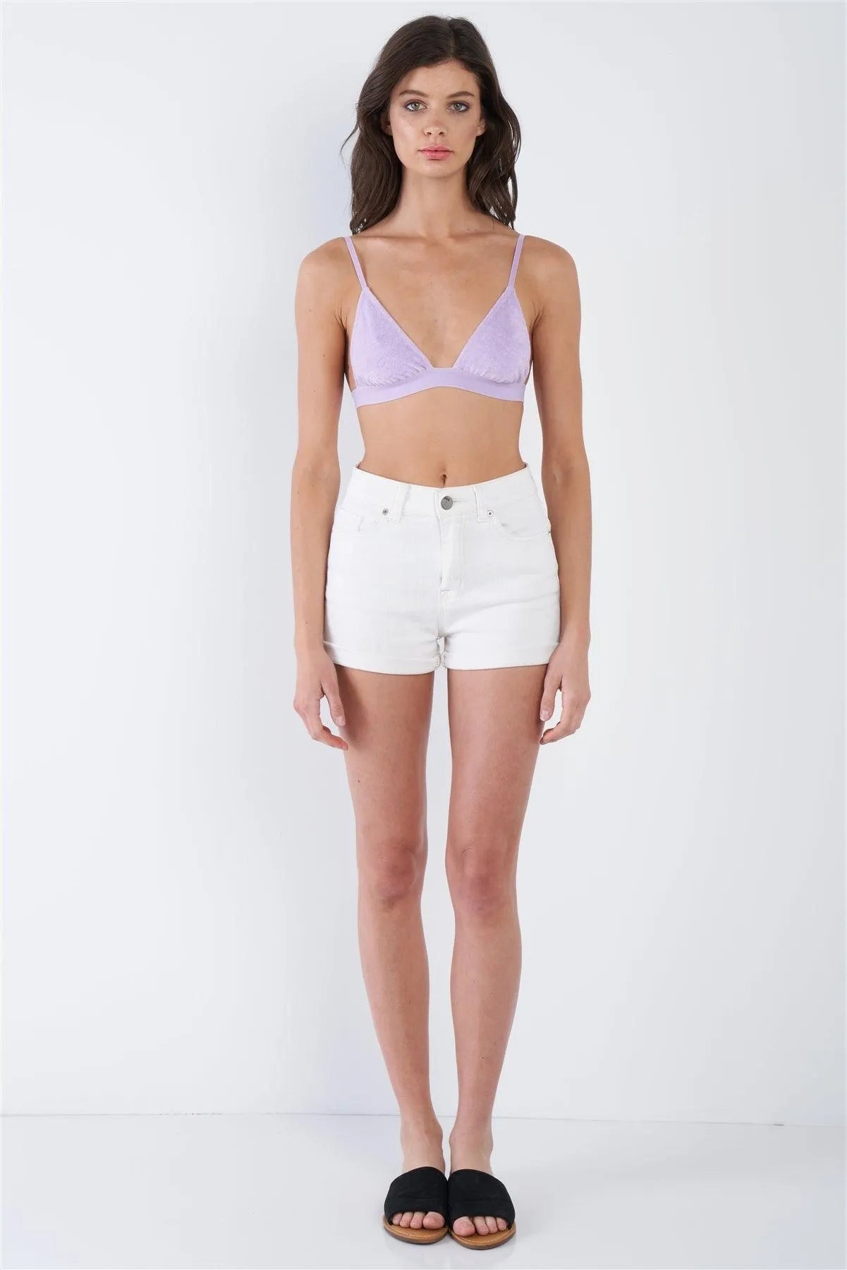 Lavender Purple Microfiber Suede Adjustable Cami Triangle Bra