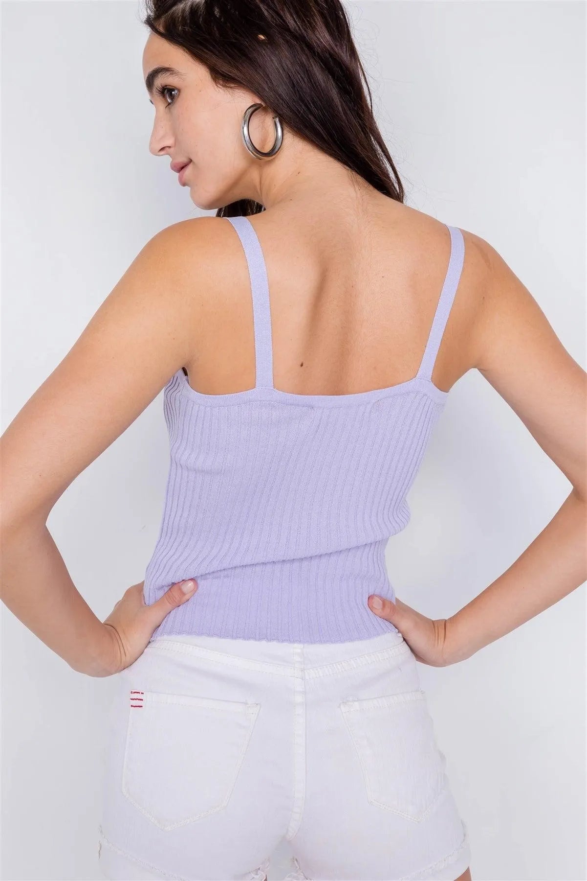 Lavender Ribbed V-Neck Basic Chic Tank Top /1-2-1