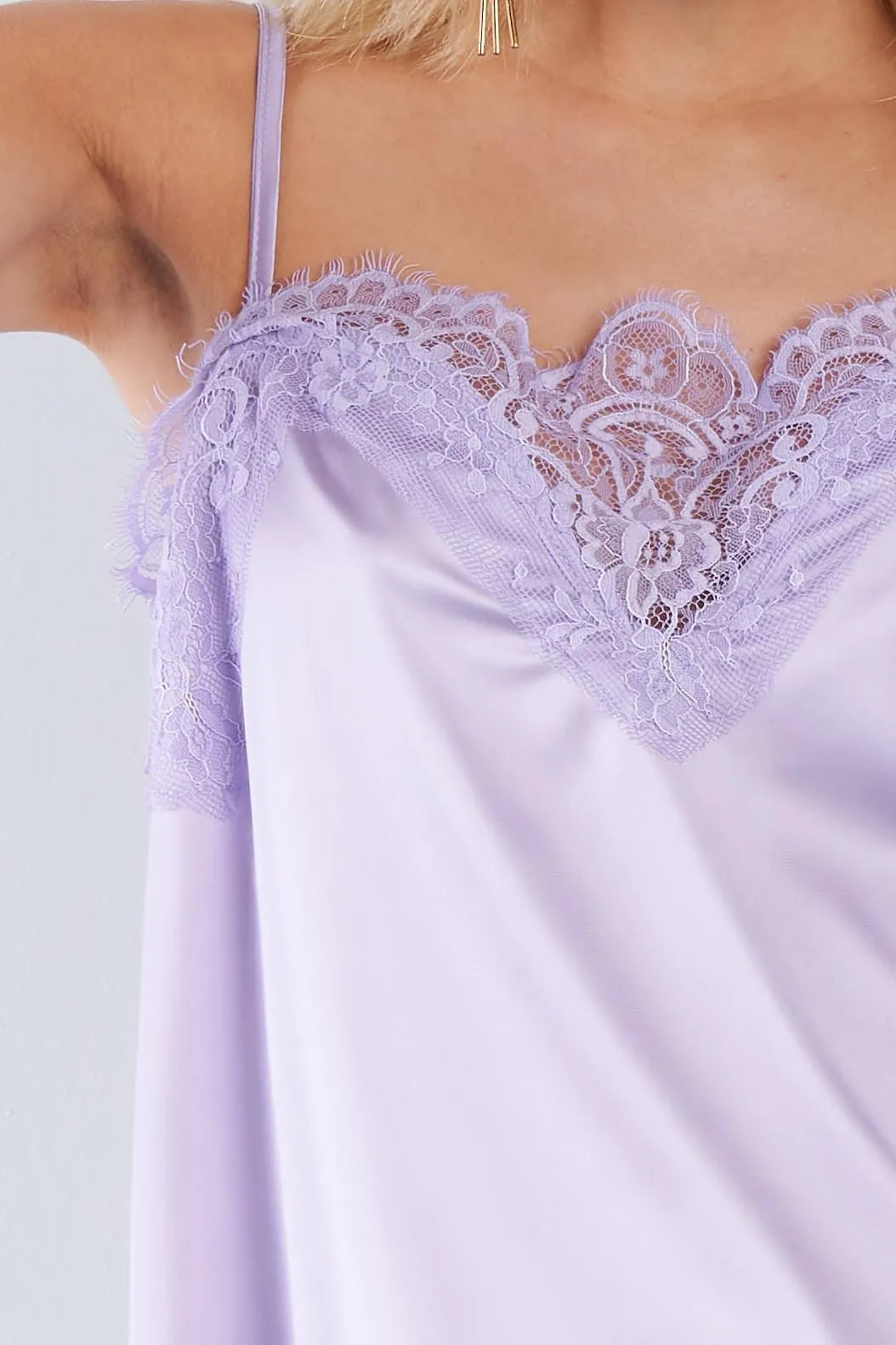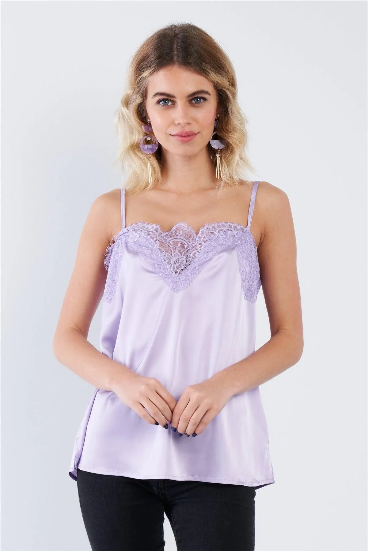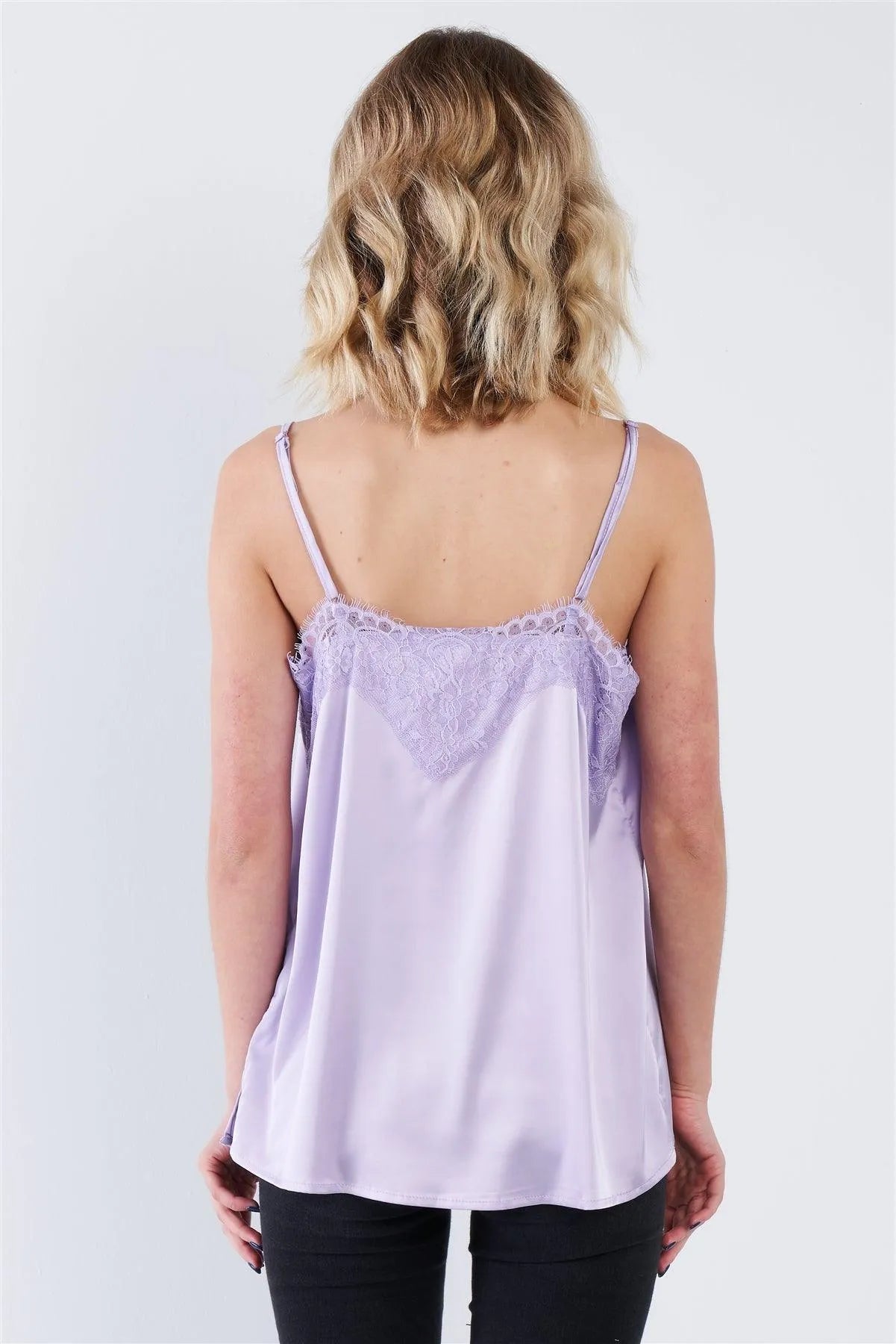 Lavender Satin Lace V-Neck Adjustable Cami Top