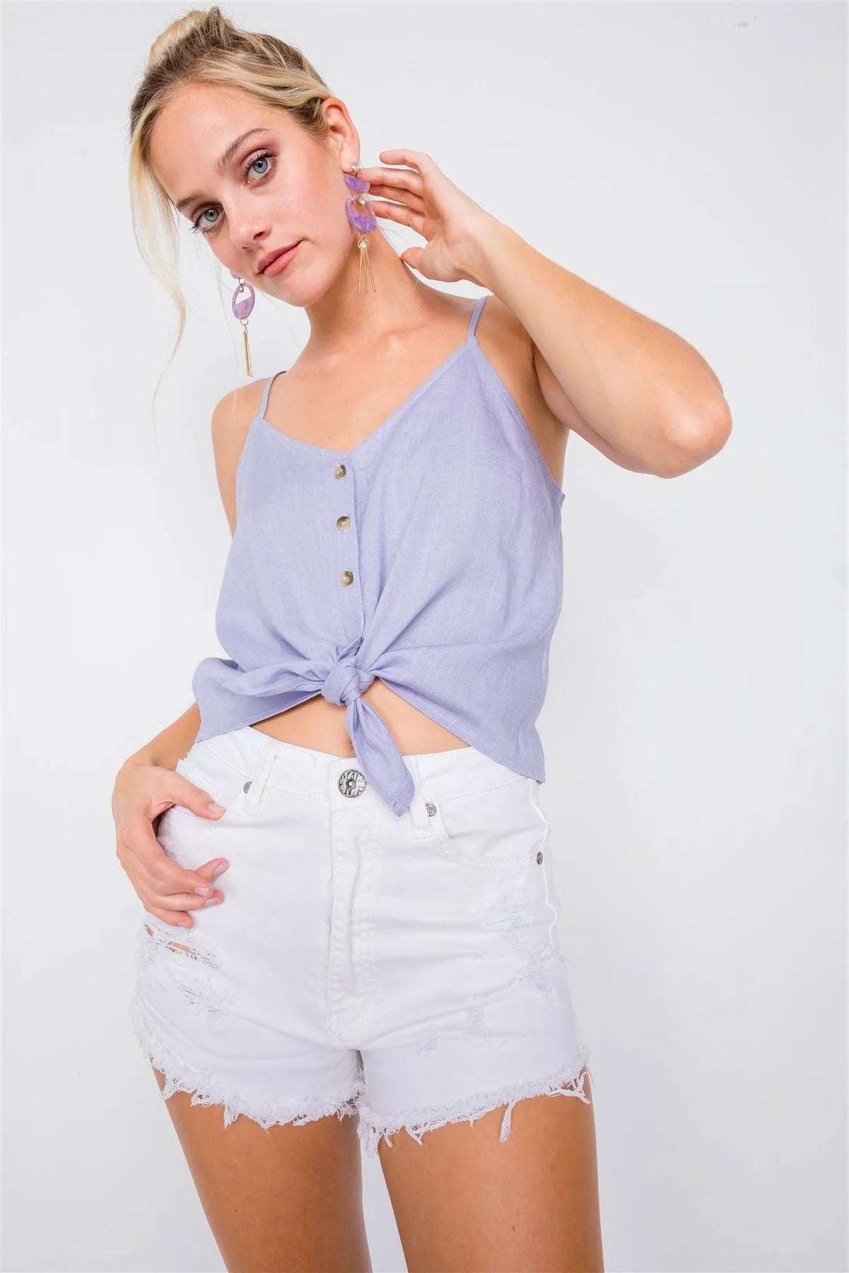 Lavender V-Neck Button Down Front Tie Cami Top /3-2-1