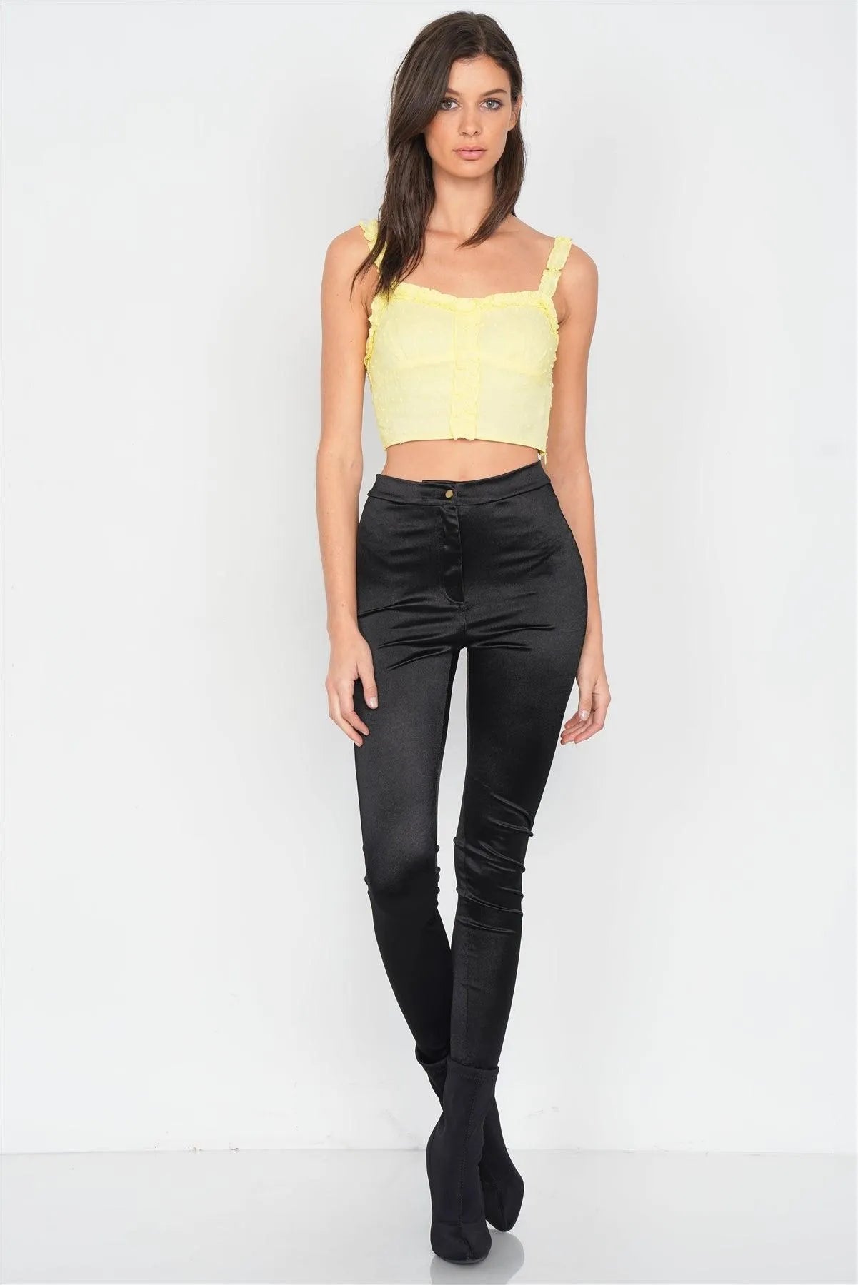 Lemon Embroidered Knot Frill Trim Crop Tank Top /3-2-1