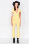 Lemon Yellow Ribbed Casual Maxi V-Neck One-Piece