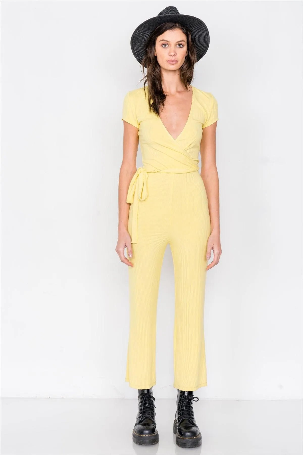 Jumpsuit Features: solid, ribbed, v-neck, short sleeve, self tie waist sash, maxi length, chic, casual, unlined, stretchy.Model is 5'9 wearing a size Small ( Waist: 23.5", Bust: 32B, Hips: 36")Item Measurements: Length: 54" , Bust: 28" , Sleeve: 4.5"Item comes pre-packed with hang tagsTrue to sizeAlso available in Lavender Purple and Black