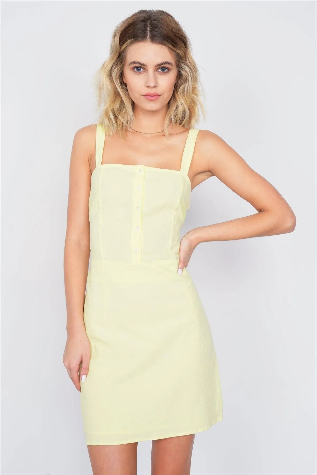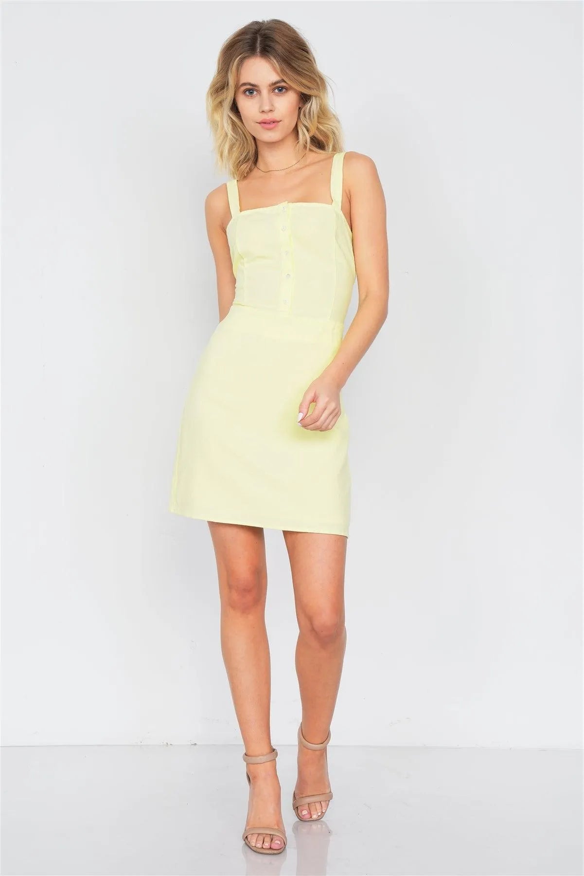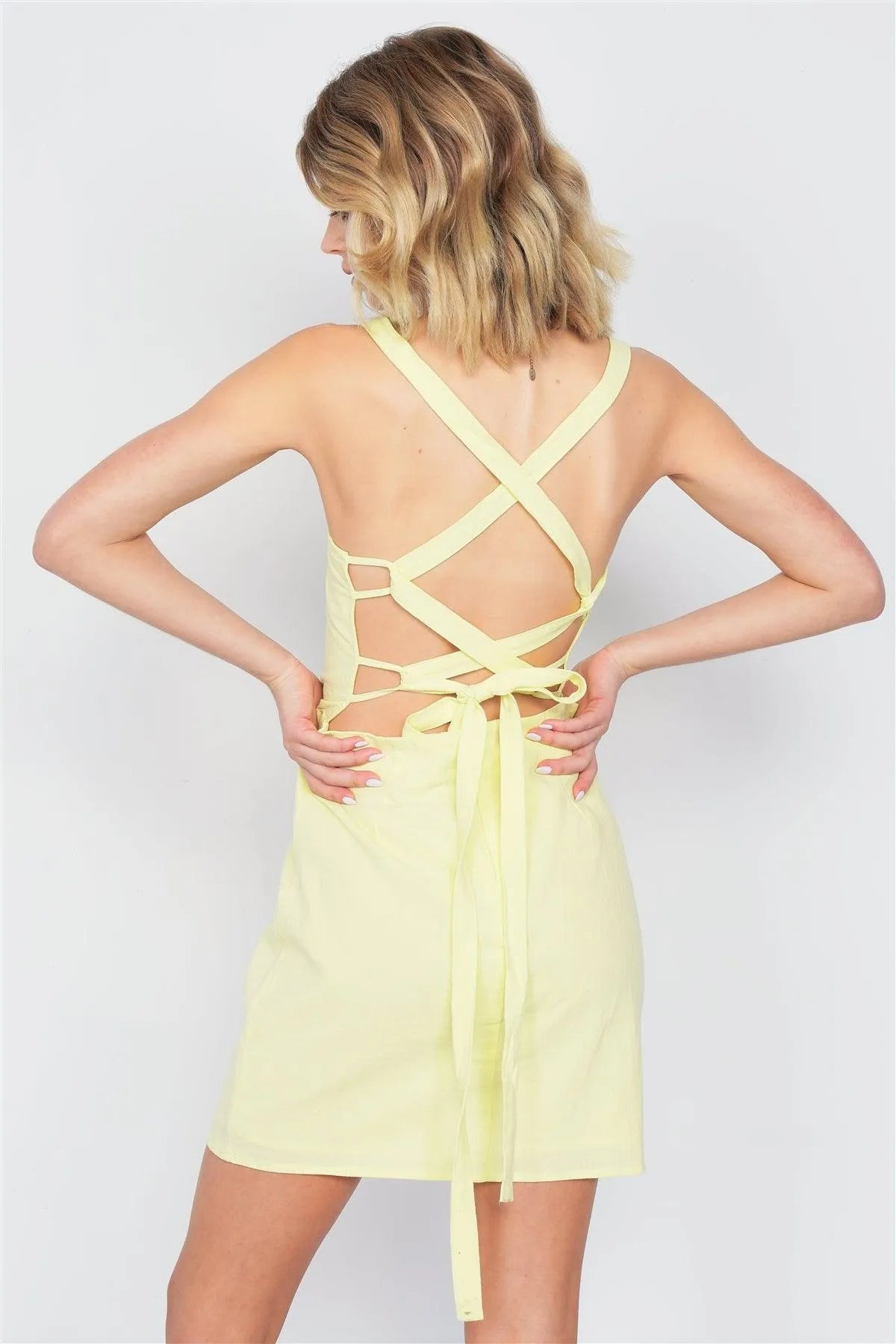 Lemonade Yellow Open Back Lace Up Mini Chic Dress /3-2