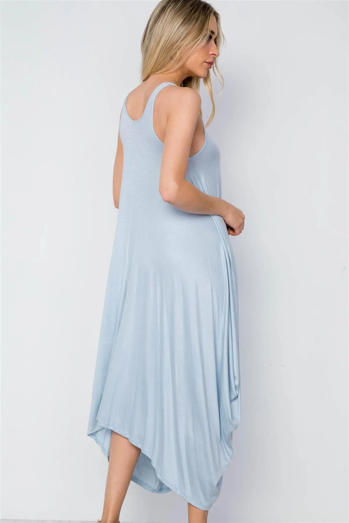 Light Blue Basic Loose Fit Sleeveless Midi Dress