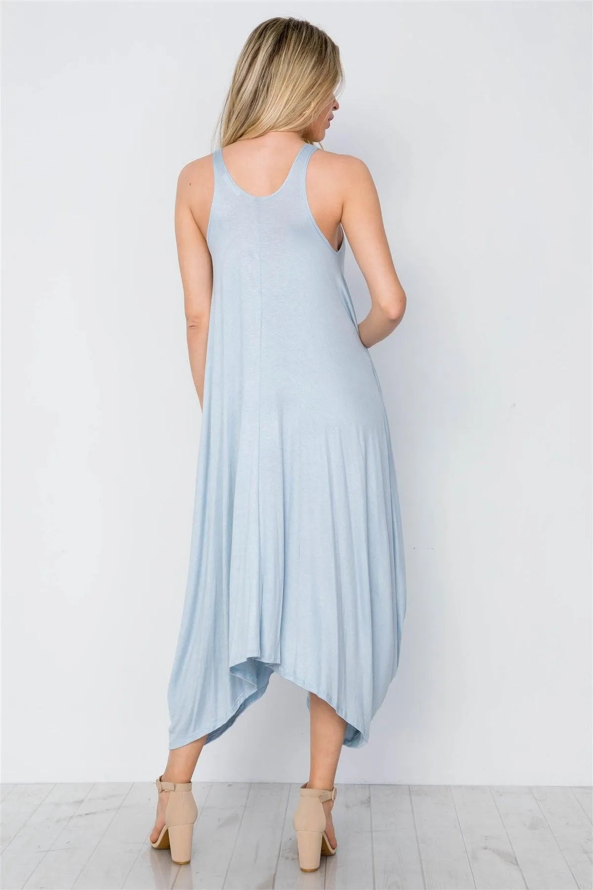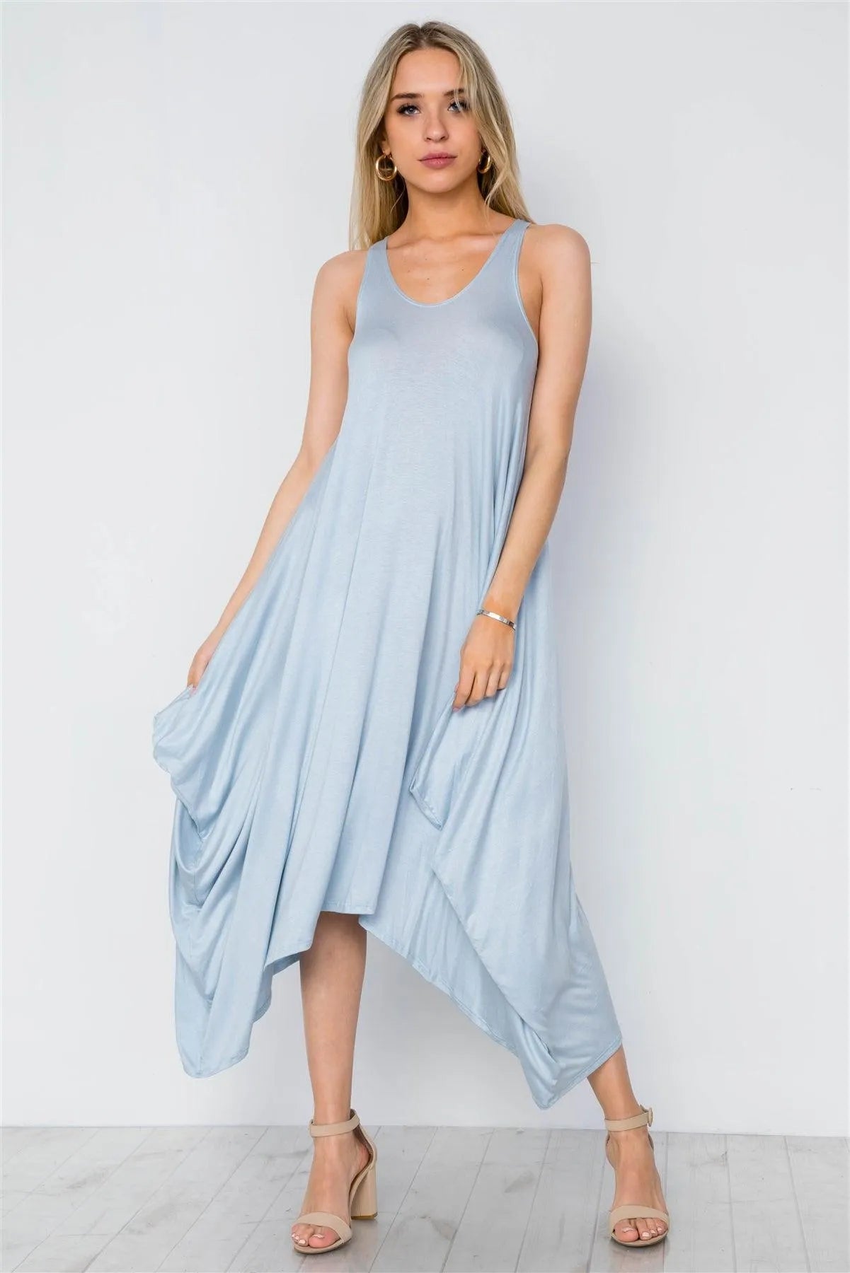 Light Blue Basic Loose Fit Sleeveless Midi Dress / 2-2-2