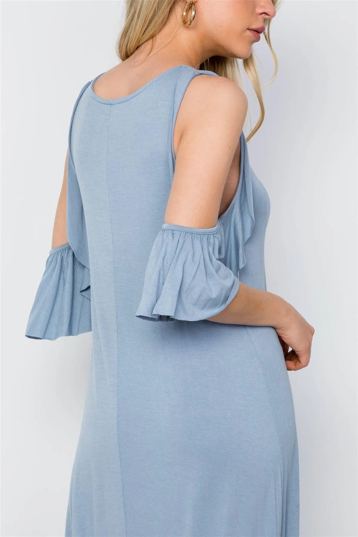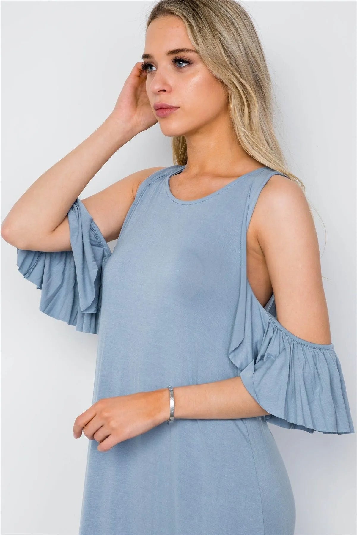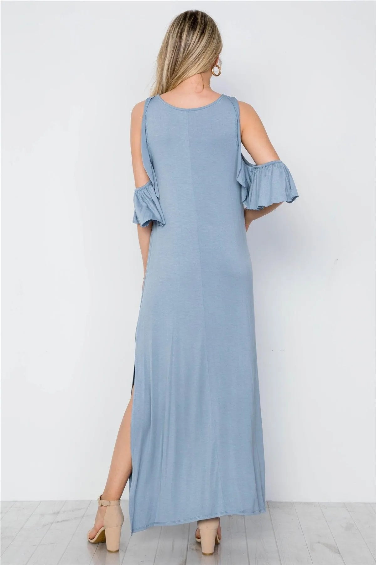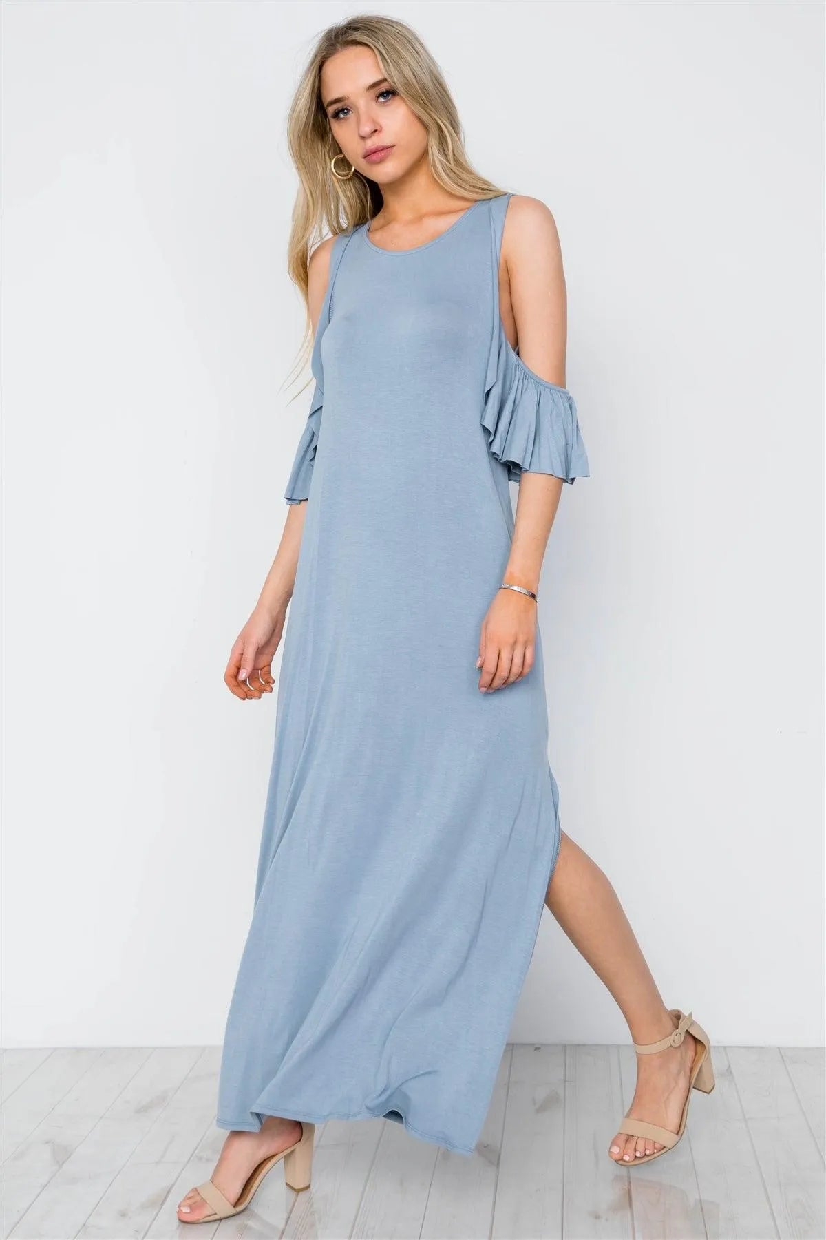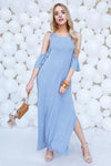 Light Blue Cold Shoulder Side Slit Maxi Basic Dress