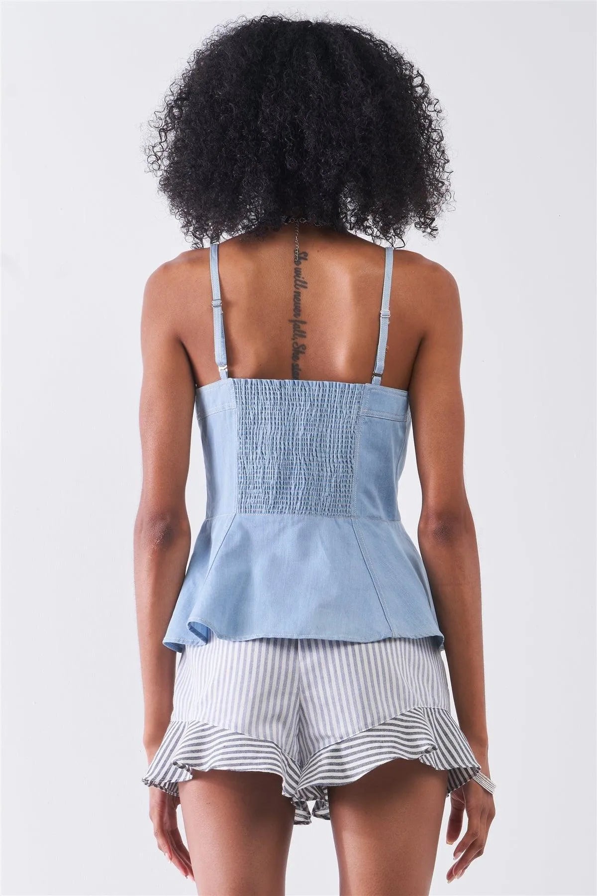 Light Blue Denim Button-Down Front Smock Top /2-2-2