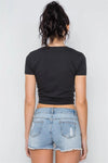 High Waisted Distressed Bermuda Cutout Denim ShortsVendor:Litz La